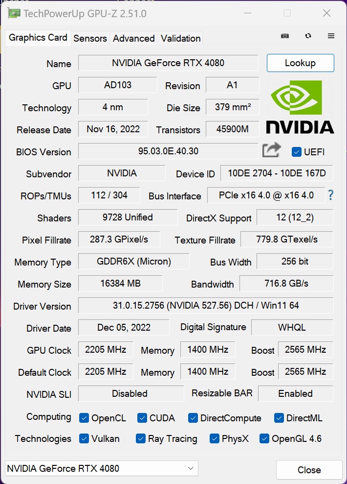 | NVIDIA GeForce RTX 4080 (1.61) | |