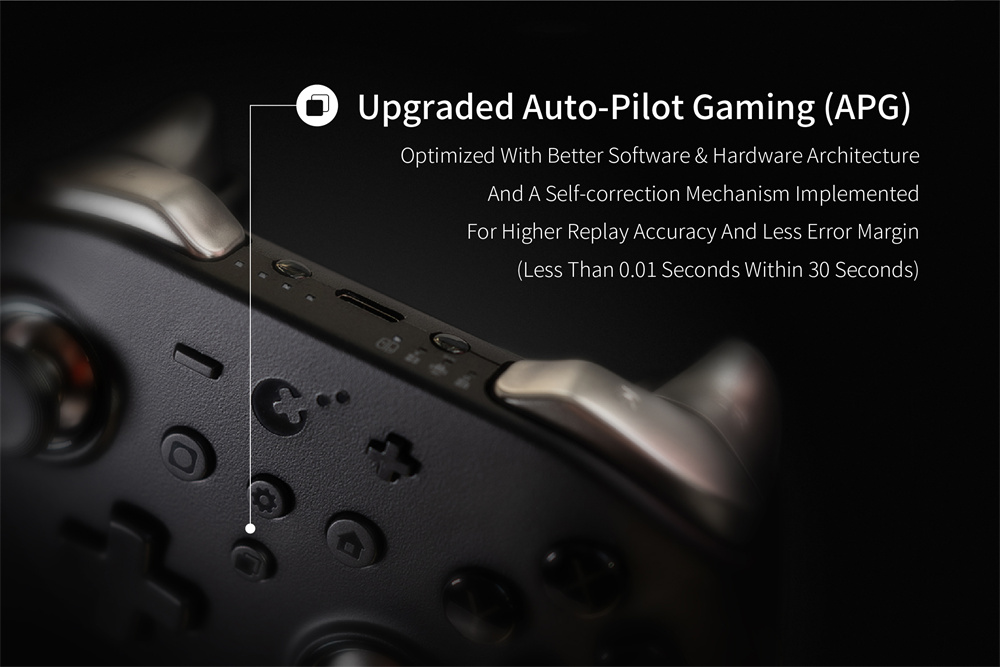 Som vanligt har handkontrollen också en d-pad, actionknappar och en extra menyknapp. Ett gyroskop ingår också. Det som saknas är extraknappar på baksidan som skulle låta spelarna utlösa åtgärder utan att ta fingret från joysticken. Med det sagt stöder kontrollen den så kallade autopilotspelningen, som gör det möjligt för användare att spela in och använda makron. Tack vare en NFC-modul kan Amiibos också aktiveras. Det trådlösa läget är tänkt att hålla i upp till 25 timmar på en full laddning. Alternativt erbjuder det trådbundna läget en högre pollingfrekvens på 1.000 Hz istället för 160 Hz via Bluetooth.
