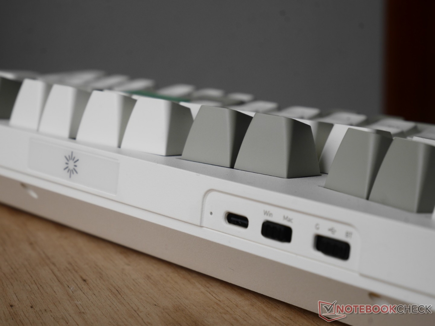 Q13 Max har en lättillgänglig omkopplare för att välja anslutningsläge och kan spara upp till tre Bluetooth-enheter i det inbyggda minnet. Tangentbordet anslöt snabbt via både Bluetooth och 2,4 GHz, och starburstplattan i frostat glas på baksidan säkerställer en stabil trådlös signal. Det var heller inga problem med långsamt uppvaknande från viloläge, vilket kan vara vanligt med trådlösa tangentbord.