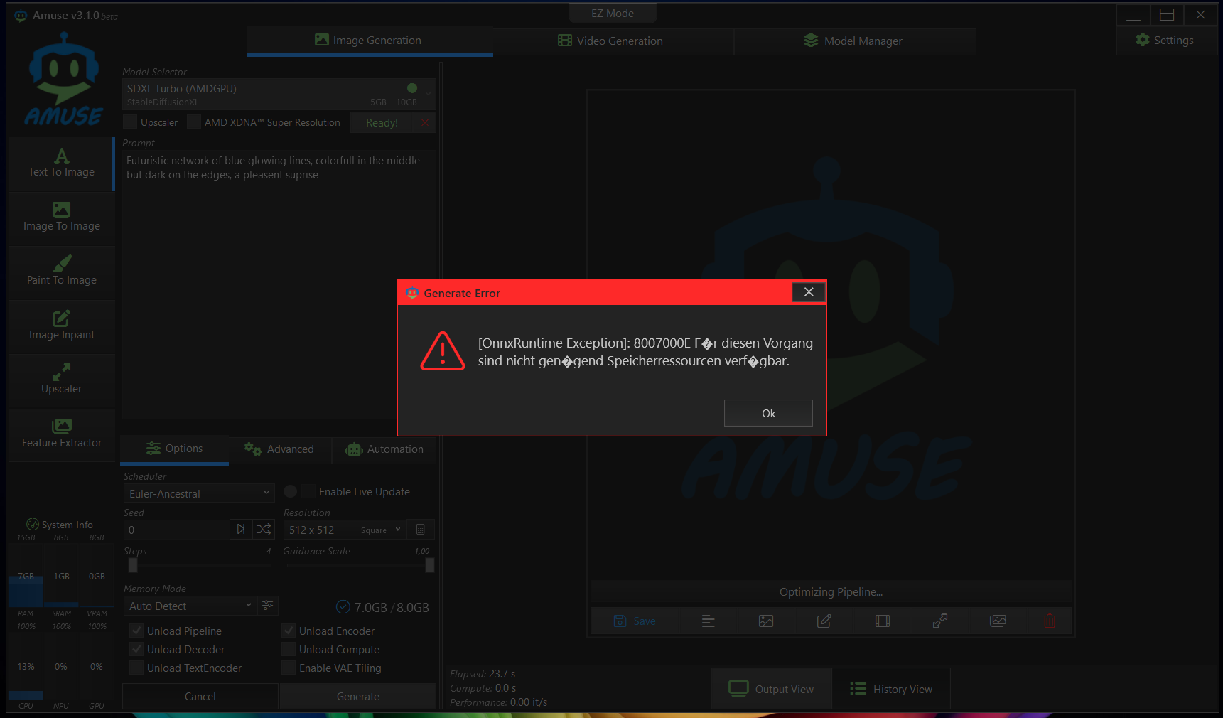 I slutändan är AI fortfarande i sin linda. Programvara som är enkel att använda och som utnyttjar kapaciteten hos AMD NPU finns ännu inte. Det är beklagligt, eftersom den prestanda vi kunde uppnå med lite tinkering var särskilt imponerande. Även Amuse visar lovande potential på den bärbara datorn, men för vår smak genererar den för många felmeddelanden och är ibland ganska långsam.