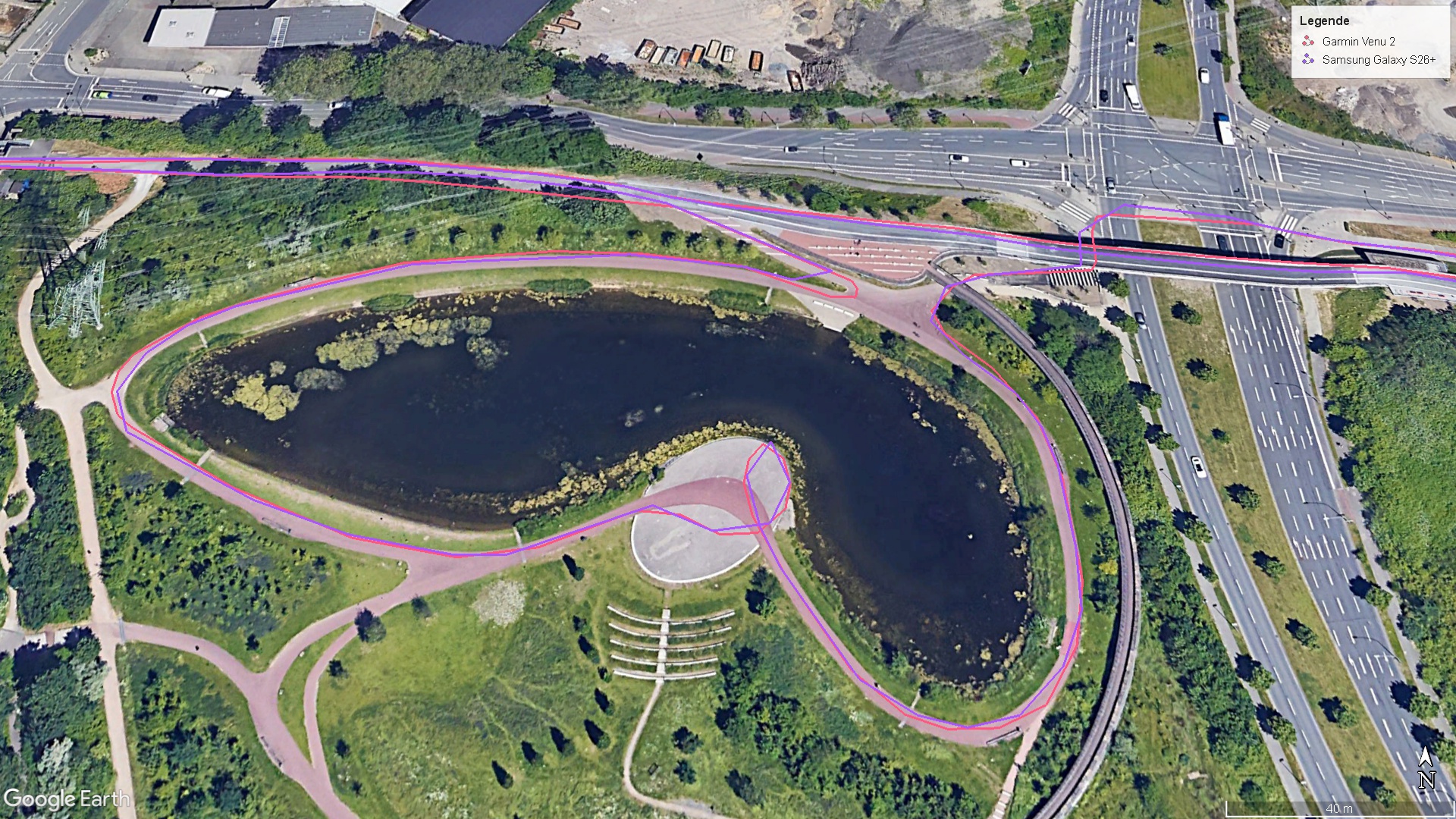 Vi jämför Samsung-telefonen med en Garmin Venu 2 under en cykeltur. Avvikelserna från vår rutt är små i testet och i vissa fall bättre än för vår referenssmartklocka.