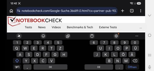 Pekskärmen reagerar snabbt och exakt på inmatningar, medan penninmatning, som i Ultra-modellenfortfarande inte erbjuds. Den linjära vibrationsmotorn ger skarp feedback och kan justeras efter dina egna behov i inställningarna.