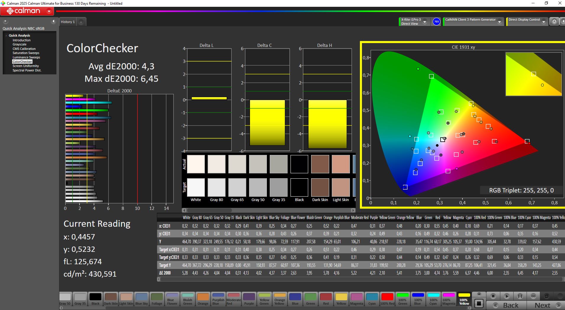 ΔE ColorChecker Calman: 4.3 | ∀{0.5-29.43 Ø4.79}