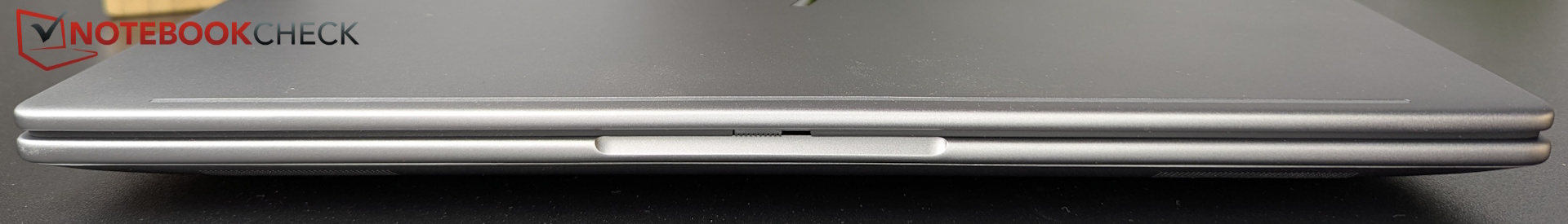 Det högkvalitativa, silvergrå metallchassit känns gediget, med gångjärn som endast visar lite spel.
