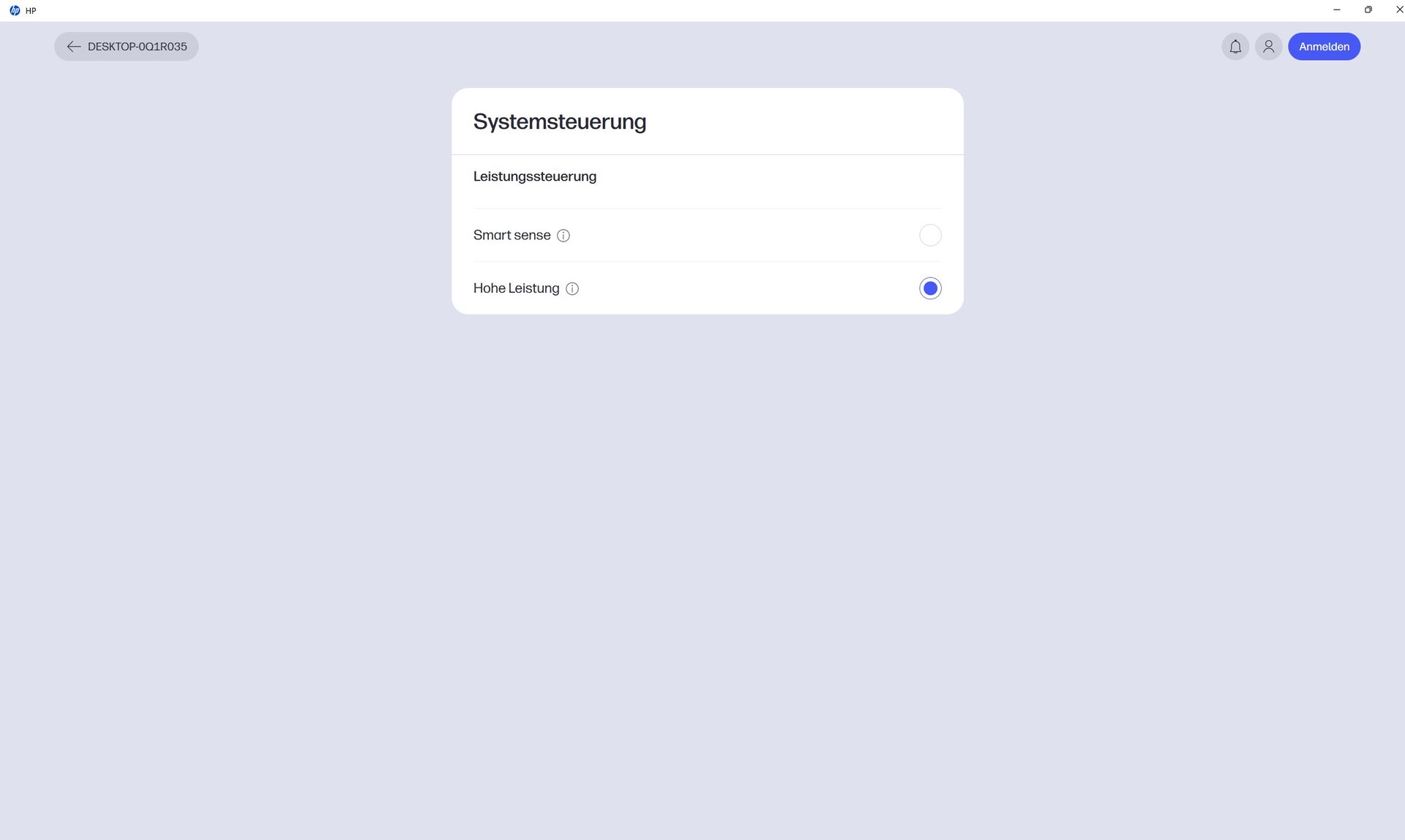 "HP App" tar alldeles för lång tid att ladda (ibland laddas den inte alls), och delar av den är felaktigt eller ofullständigt översatt. Under "System control" hittar vi två prestandalägen, varav vi använde "High performance" för våra tester.