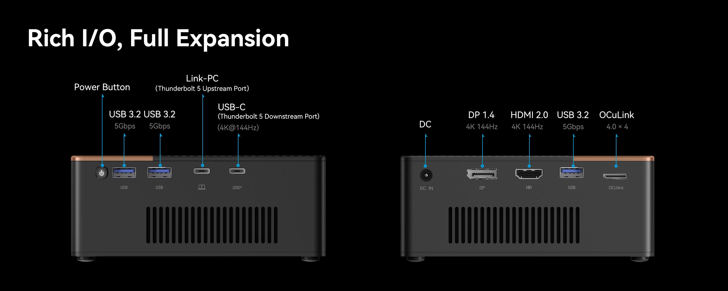 Det kommer att finnas en viss nivå av prestandaförlust, men med OCuLink överstiger den vanligtvis inte en fjärdedel om den är ihopkopplad med en kapabel värd. För de med ett system utan denna port finns det en Thunderbolt 5-port, som också fungerar med USB4 v2-gränssnittet.