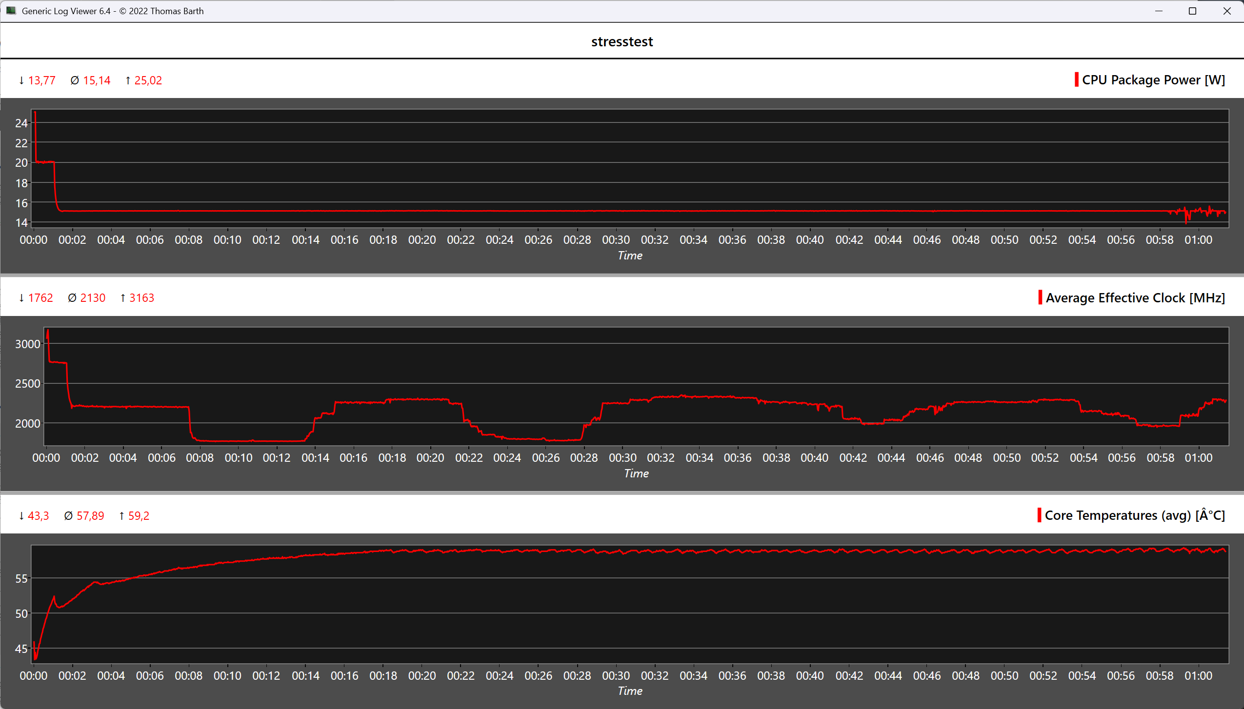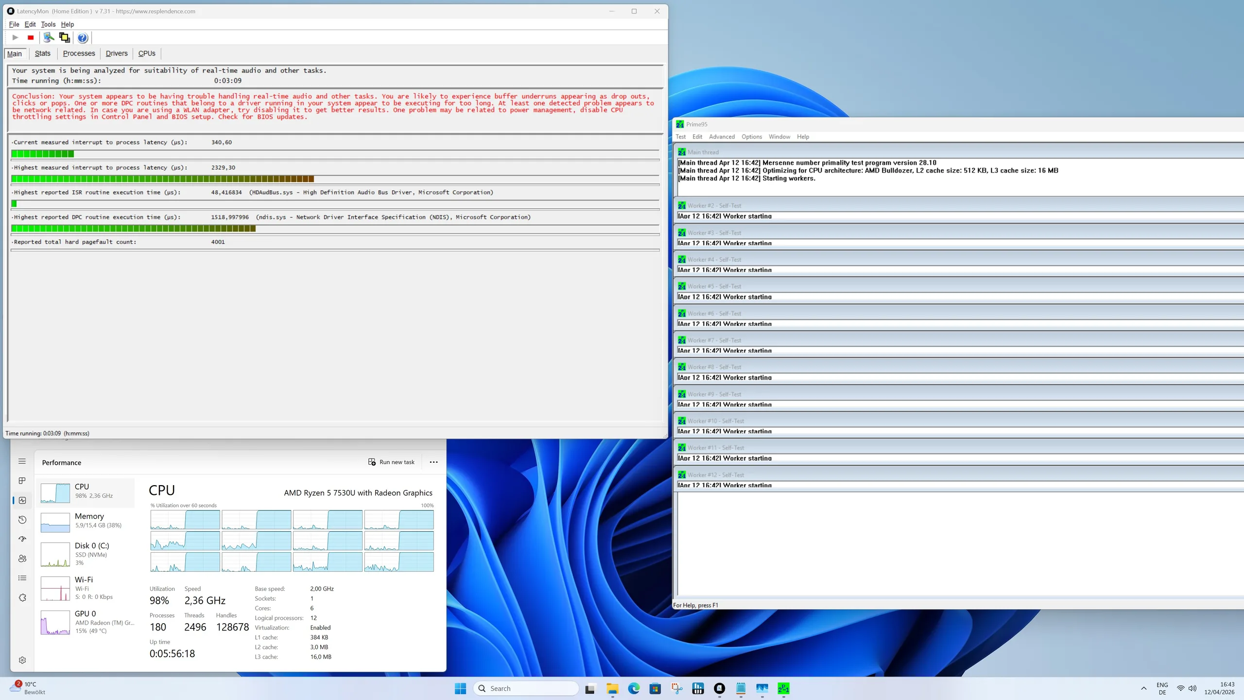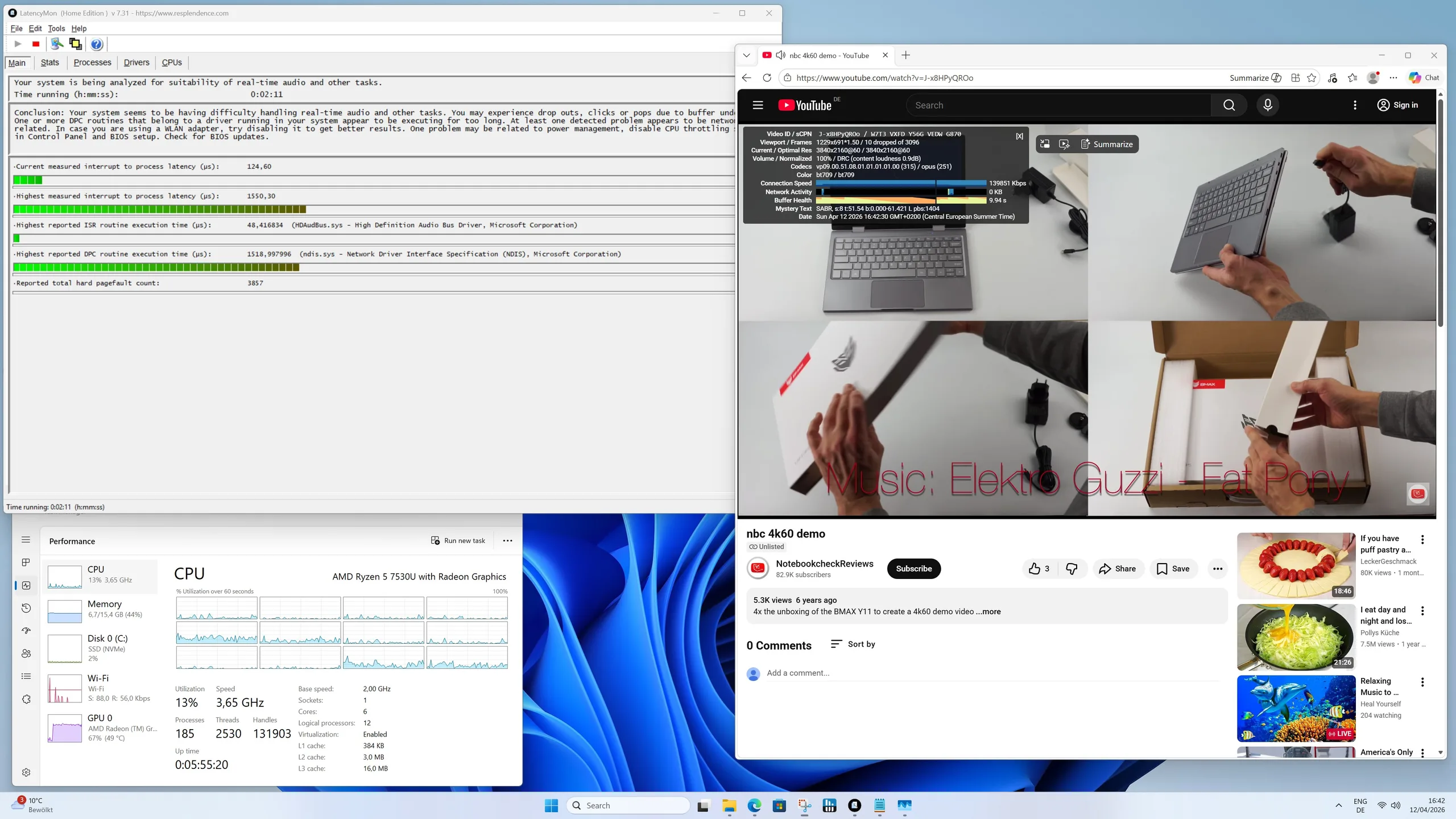 Höljet på Geekom A5 Pro förblir behagligt svalt både i viloläge och under belastning, utan några märkbara hot spots. I stresstestet stiger temperaturen på den installerade Ryzen-processorn kortvarigt till 60 °C, men förblir inom ett icke-kritiskt intervall. TDP på bara 15 watt avleds på ett tillförlitligt sätt av kylsystemet, vilket säkerställer stabil prestanda.