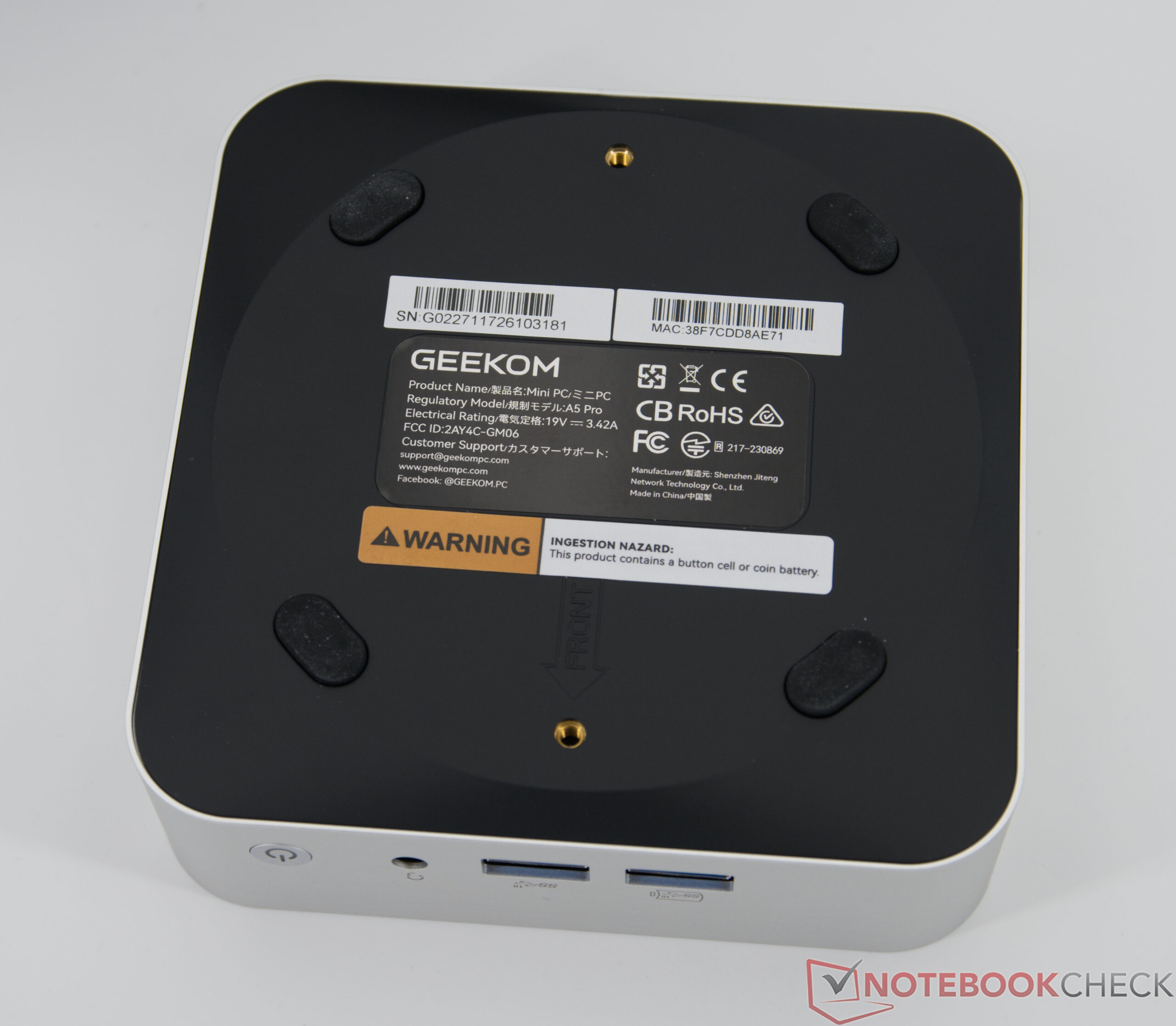 Även om Geekom A5 Pro endast kan repareras i begränsad omfattning, erbjuder den en 36-månaders garanti, vilket är över den vanliga industristandarden. Den kompakta förpackningen möjliggör säker och okomplicerad transport. När det gäller hållbarhet betonar Geekom den energieffektiva driften av mini-pc:n, men ger ingen specifik information om användningen av återvunnet material. Enligt tillverkaren är enheten CE-, FCC-, CB-, CCC-, SRRC-, PSE-, TELEC-, CEC- och RoHS-certifierad.