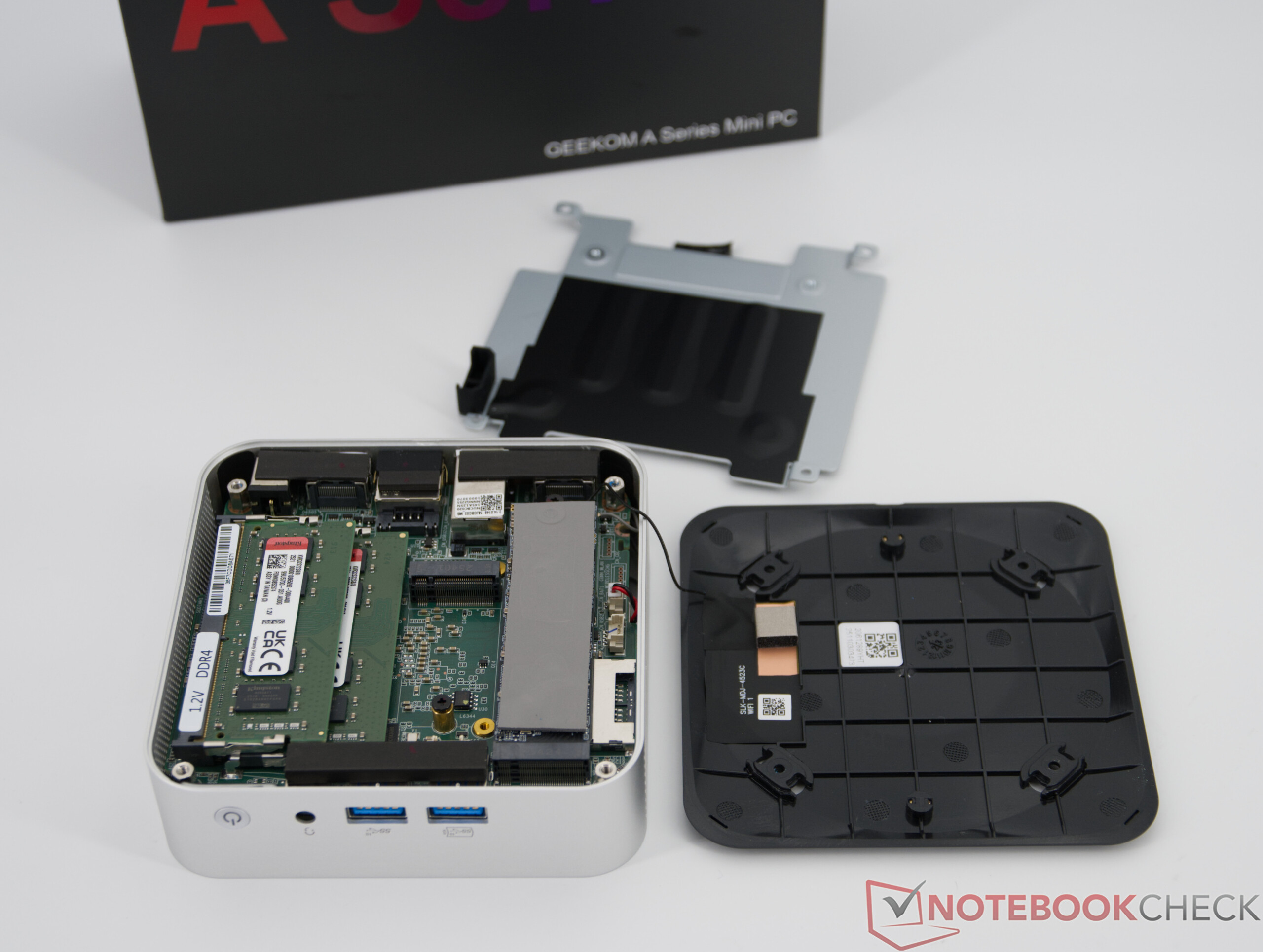 Geekom A5 Pro levereras från fabriken med RAM-minne och SSD installerat och är därför redo att användas direkt. Uppgradering är i princip möjlig, men kräver lite fingerfärdighet när man öppnar det kompakta höljet.