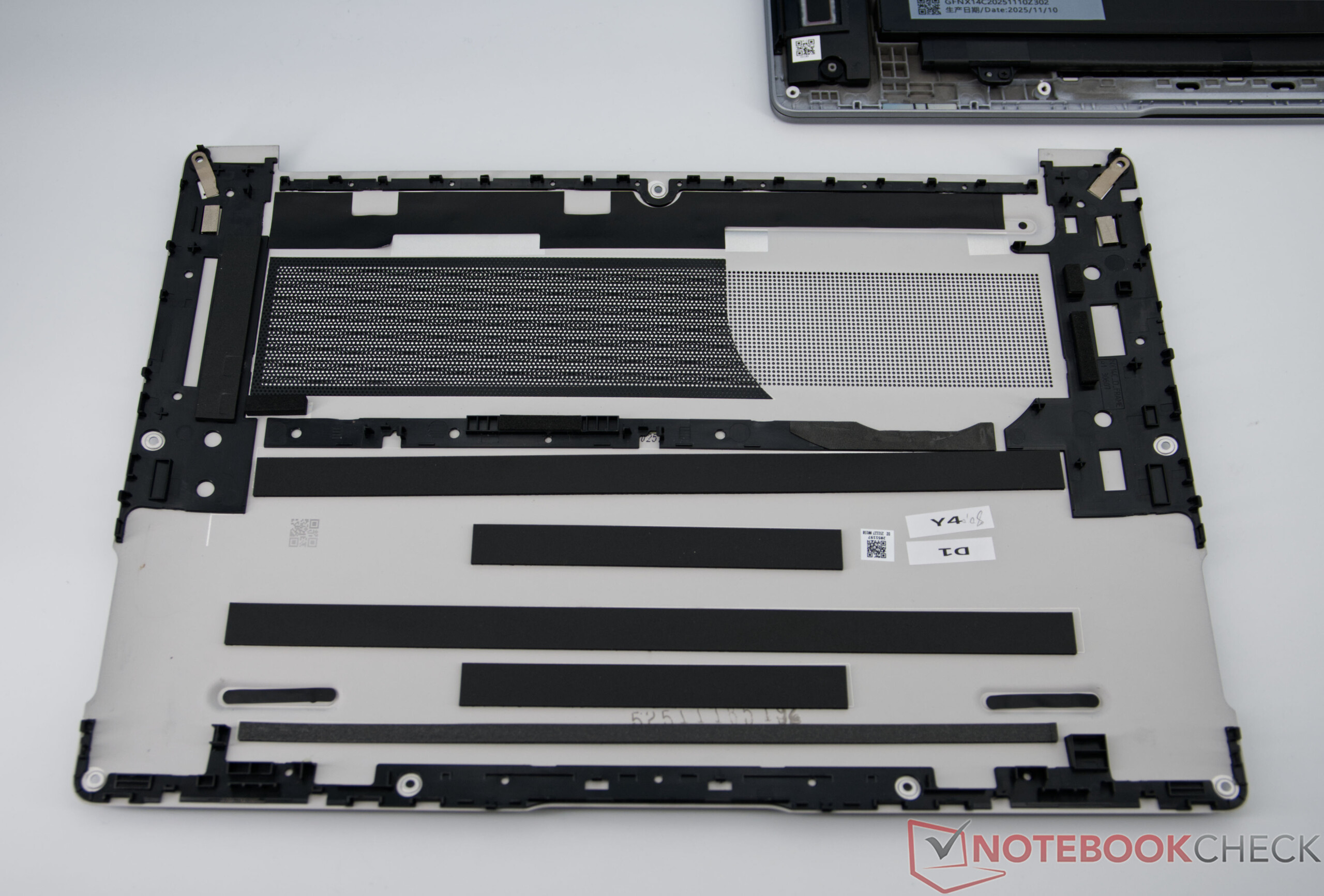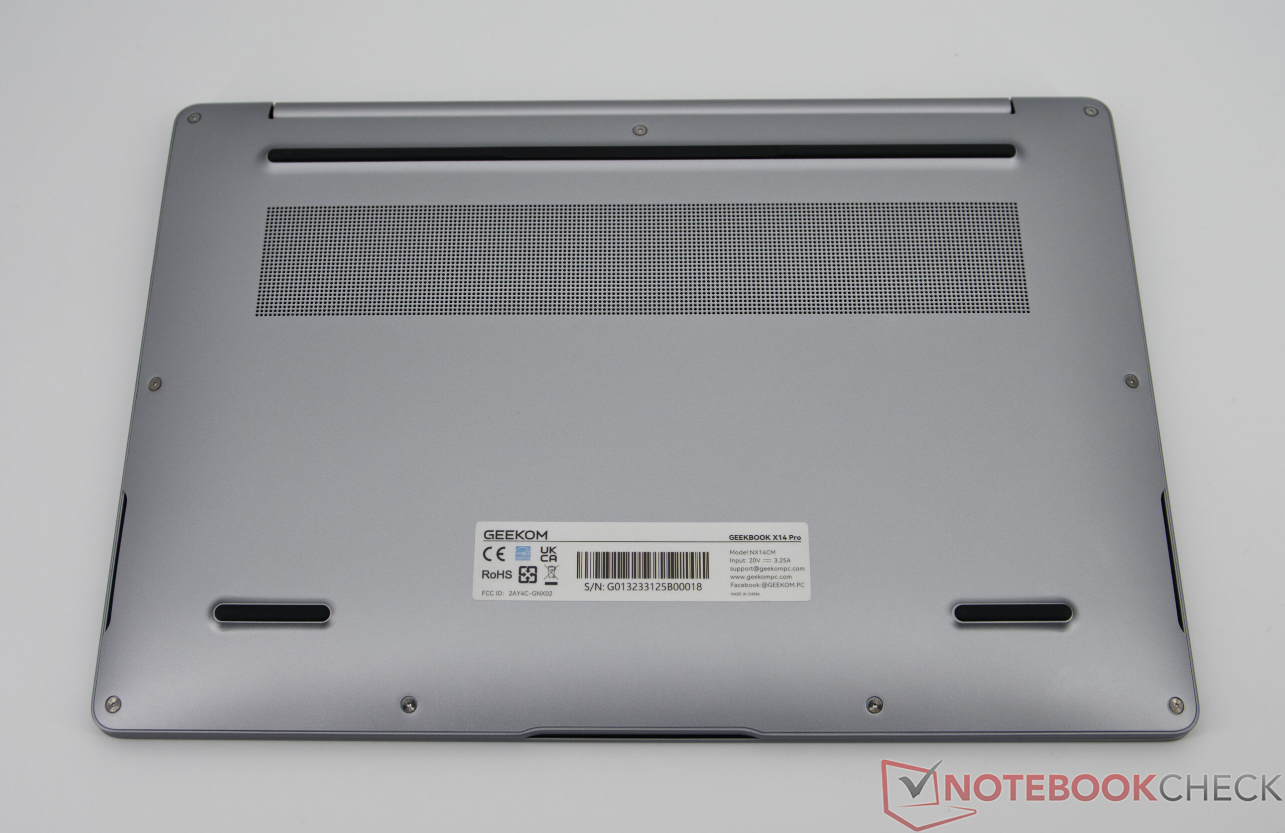 GeekBook X14 Pro imponerar med ett särskilt lätt metallchassi tillverkat av magnesiumlegering, en högkvalitativ finish och en elegant och modern design. Trots sin låga vikt verkar den bärbara datorn stabil, även om små flexpunkter kan uppstå under hårt tryck - en typisk kompromiss för ultralätta enheter. Gångjärnen är solida, lämpliga för daglig användning och håller skärmen väl på plats.