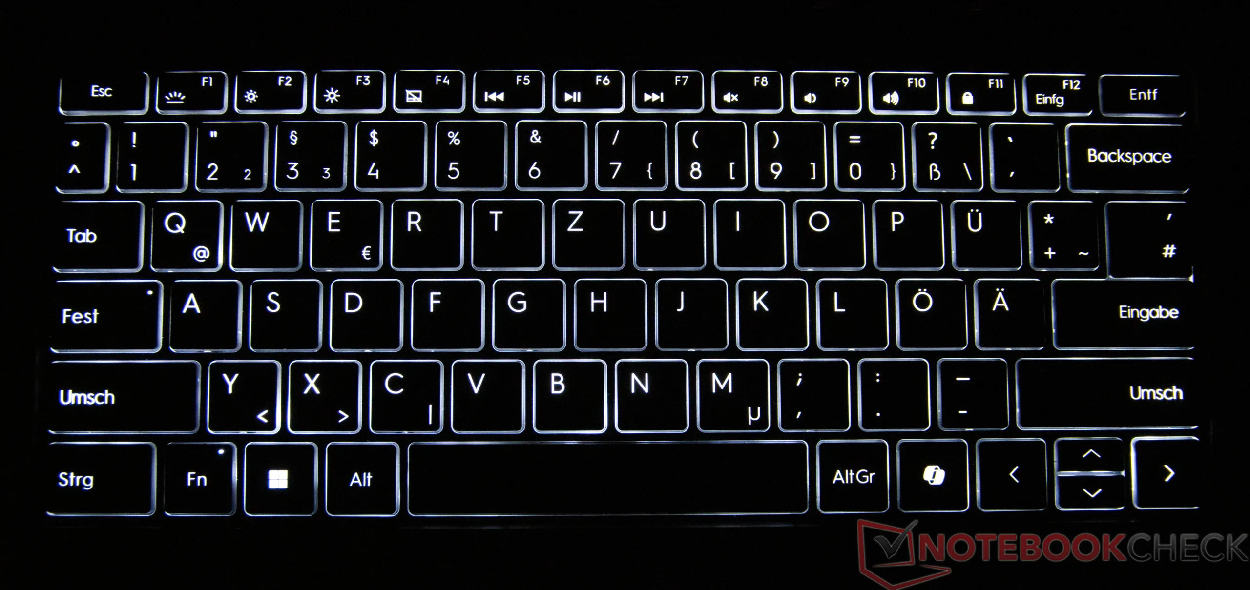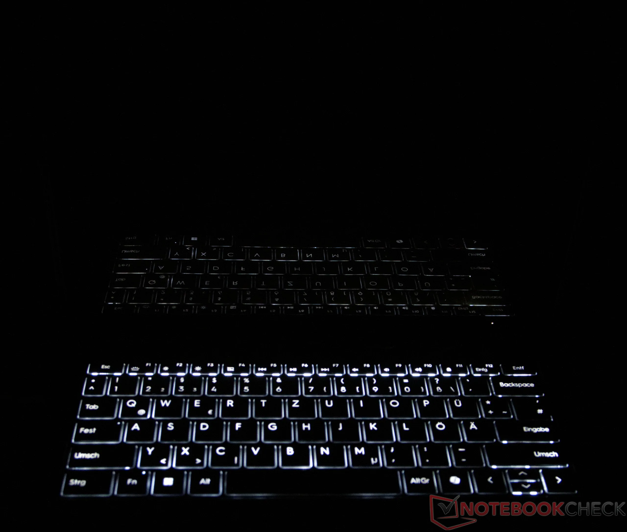 Tangentbordet på GeekBook X14 Pro erbjuder en lågmäld känsla i kombination med en tydligt förnimbar tryckpunkt. Tangenterna ger en exakt skrivkänsla, vilket också gör längre skrivsessioner möjliga, även om återkopplingen är något fastare. Pekplattan på 12 × 7,2 centimeter fungerar tillförlitligt, implementerar inmatningar exakt och stöder de vanliga multi-touch-gesterna. Den högkvalitativa känslan och det diskreta, väl dämpade klickljudet understryker den behagliga användarvänligheten.