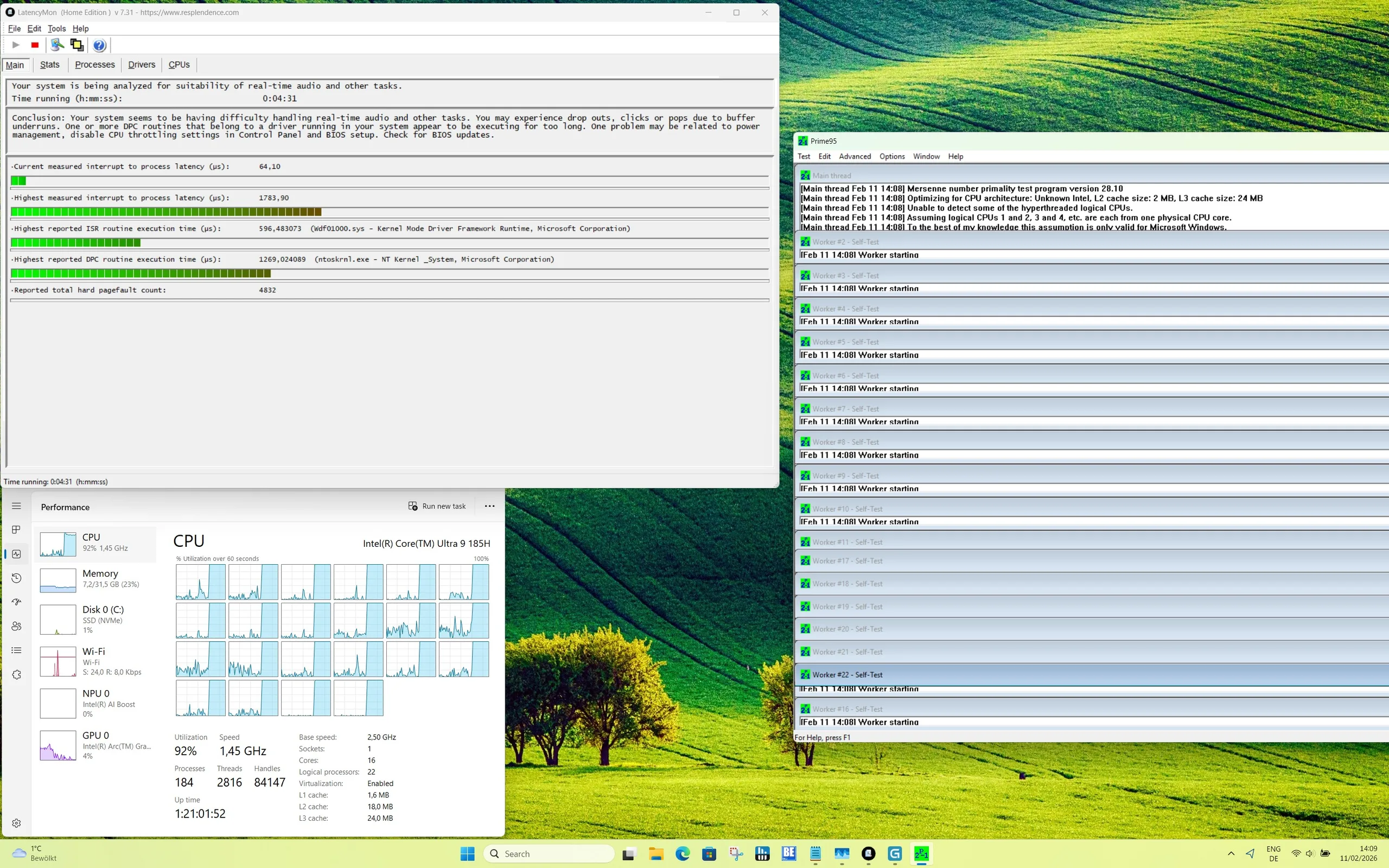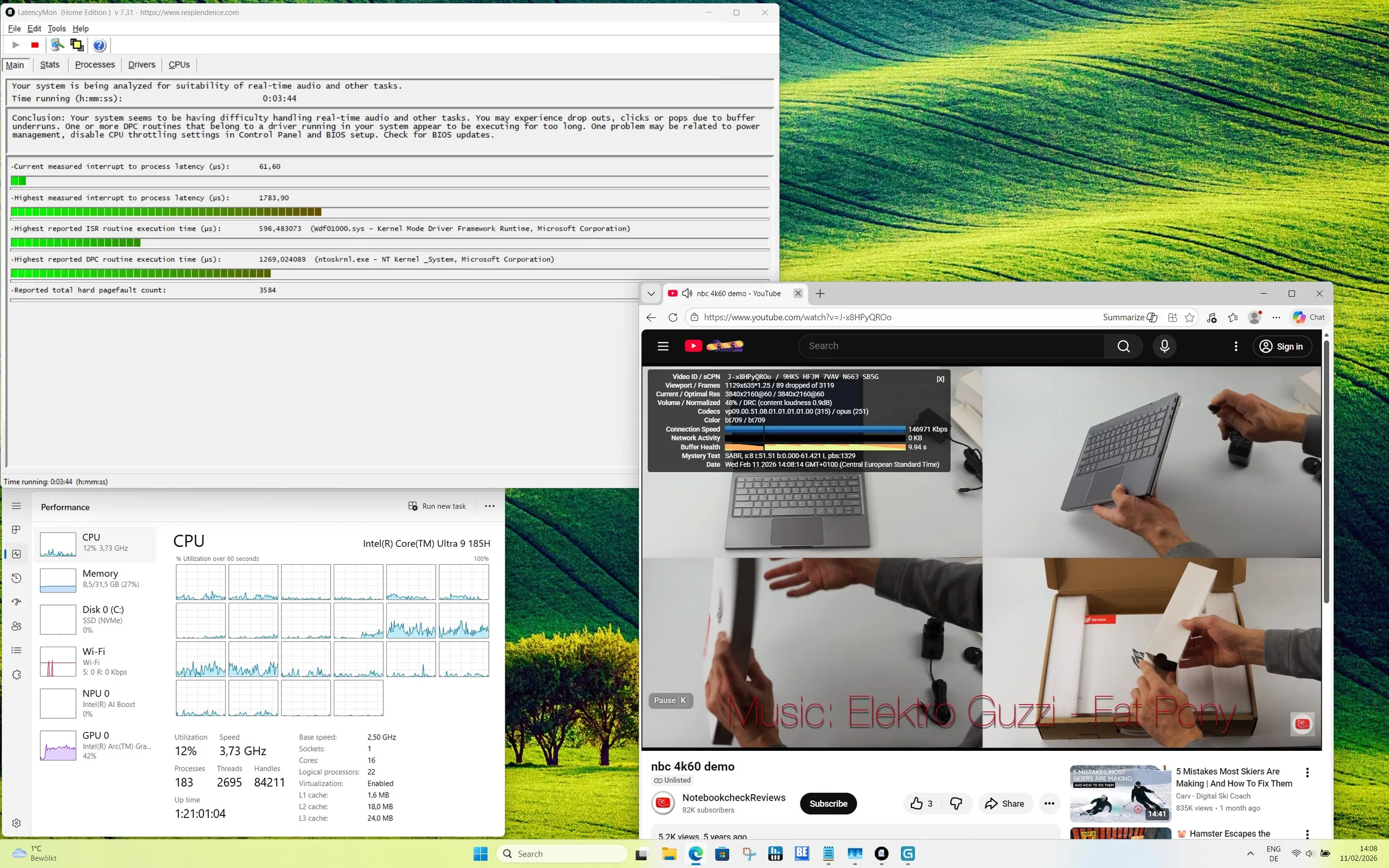 Med en strömförbrukning på 45 watt under korta perioder och cirka 35 watt kontinuerligt är Intel Core Ultra 9 185H i GeekBook X14 Pro levererar en solid prestanda som säkerställer det minimum som Intel specificerar för SoC. Den låga marginalen för Turbo-användning resulterar i sämre resultat jämfört med andra enheter med samma processor. I vår jämförelse kan GeekBook X14 Pro säkra en plats i mittfältet och duellerar ofta med Dell 14 Plus. Under ihållande belastning minskar prestandan något för att sedan stabiliseras på en konstant nivå - ett vanligt beteende för särskilt lätta ultrabooks.