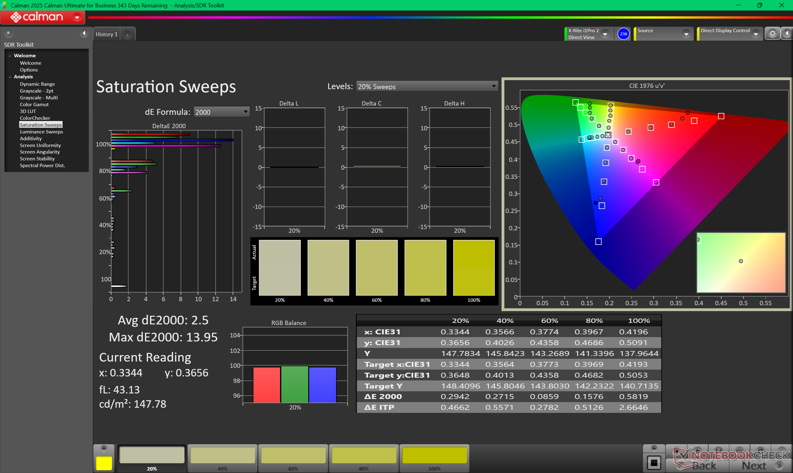 | Display P3 Coverage (%) | 37.9 | 99.8 163% | 42.9 13% | 42.6 12% | 99.93 164% | 64.1 69% |