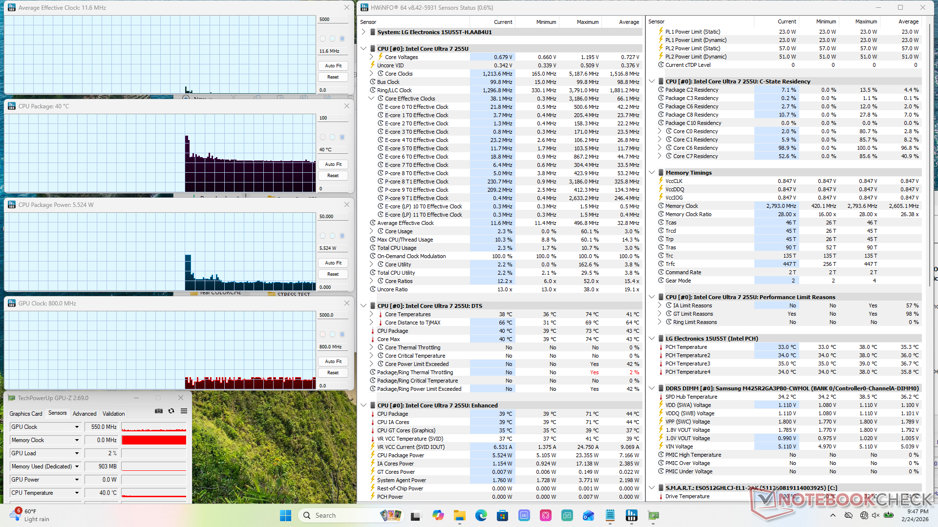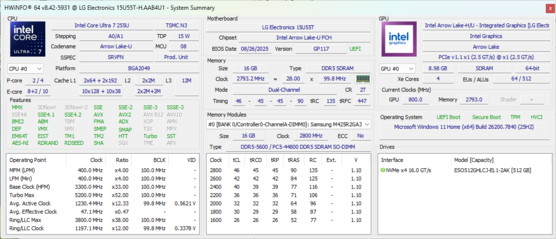 | LG Gram 15U55T Intel Core Ultra 7 255U ⎘ Intel Graphics 4-Core iGPU (Meteor / Arrow Lake) ⎘ 16 GB Minne | Amazon: Listpris: 800 USD | 1.6 kg | 19.3 mm | 15.60" 1920x1080 141 PPI IPS | |