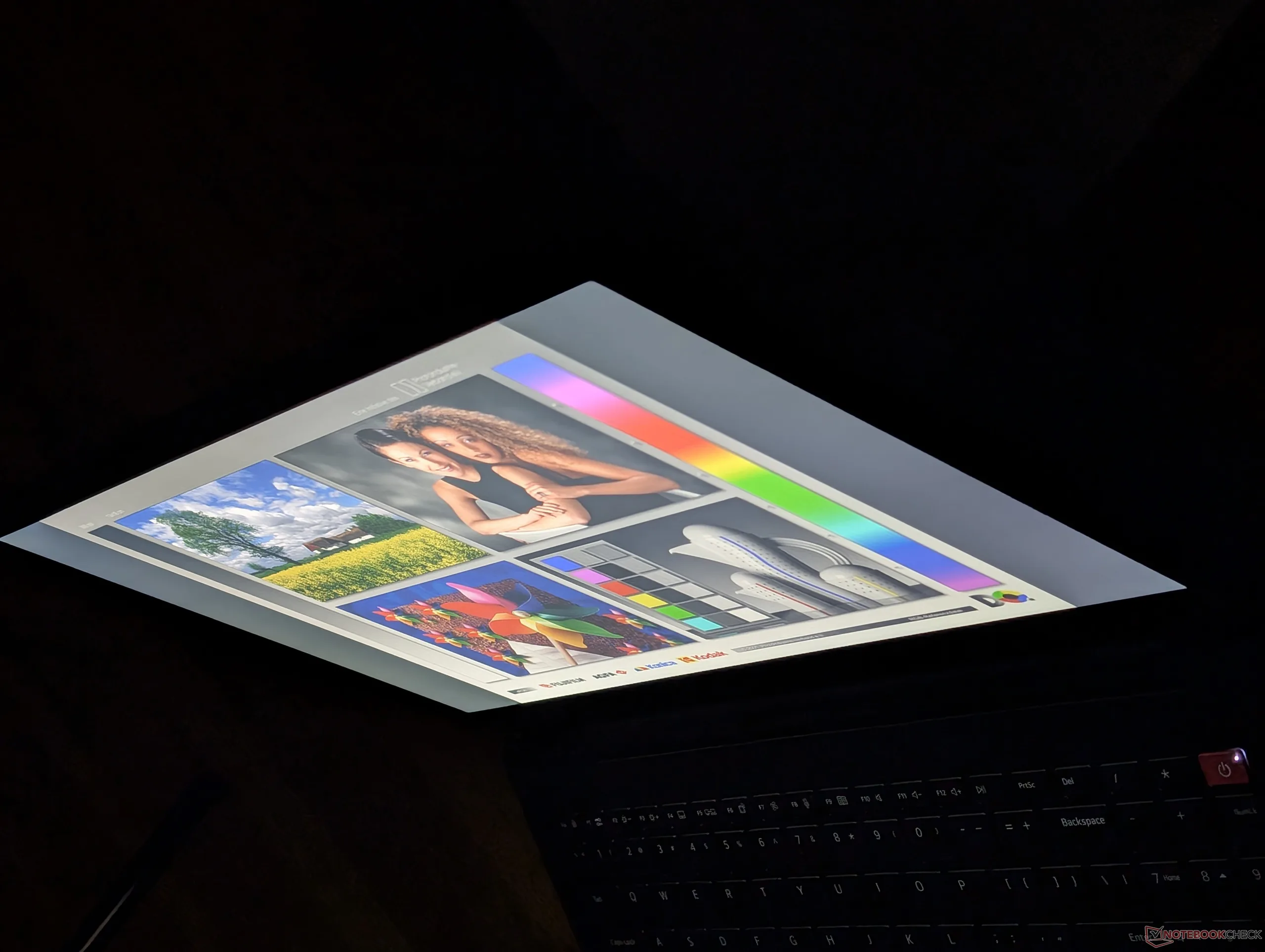 Skärmen är dåligt kalibrerad när den levereras, vilket kan förväntas av en bärbar budgetdator. Kalibrering med vår X-Rite-kolorimeter skulle avsevärt förbättra de genomsnittliga DeltaE-värdena för gråskala och färg från 5,2 och 6,78 till bara 0,8 respektive 2,73.