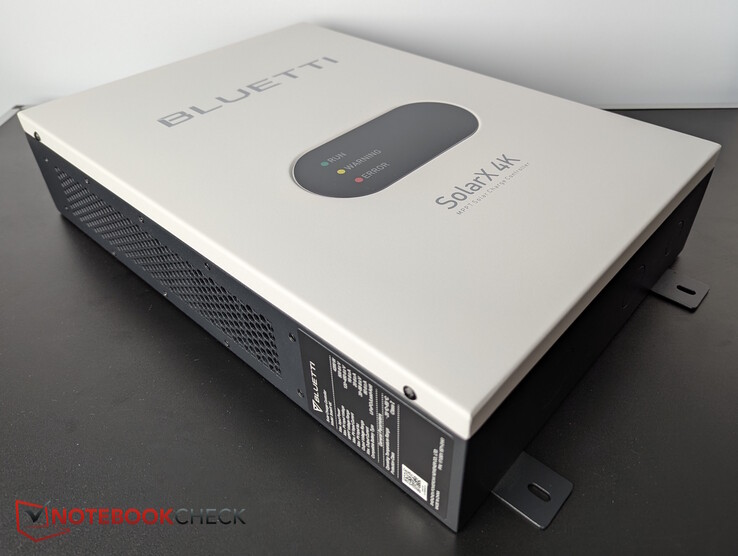 Den 7,6 kg tunga SolarX 4K är inrymd i ett metallhölje med luftkylning (≤ 50 dB). Den ljusa metallfrontpanelen hålls fast av fyra sexkantsskruvar med en gummipackning under. Även om den är robust är den inte väderbeständig - den bör alltid installeras under tak.