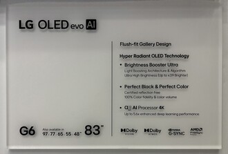 Föga förvånande håller sig G-serien till galleridesignen, vilket gör att smart-TV:n kan monteras dikt an mot en vägg. LG G6 OLED kommer att erbjudas med skärmstorlekar på 48, 55, 65, 77, 83 och 97 tum. LG utrustar dessa TV-apparater med en ny tandem OLED-panel som kommer att marknadsföras som en "Hyper Radiant" OLED-panel med "Brightness Booster Ultra". Denna teknik gör tydligen apparaten 3,9 gånger ljusstarkare än den mer prisvärda LG B6 OLED, även om det läckta marknadsföringsmaterialet inte ger exakta siffror eller en direkt jämförelse med föregångaren.