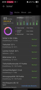 Huawei Watch Ultimate 2 erbjuder omfattande sömnspårning. Den registrerar de olika sömnstadierna och visar både deras tidpunkt och deras andel av den totala sömnen. Dessa stadier visualiseras på en tidslinje.
