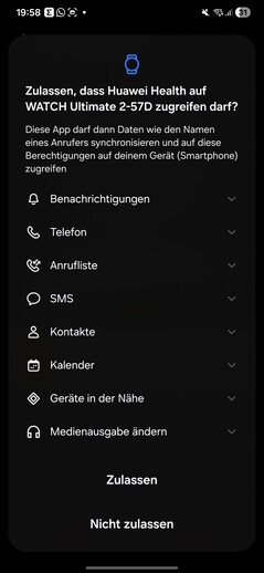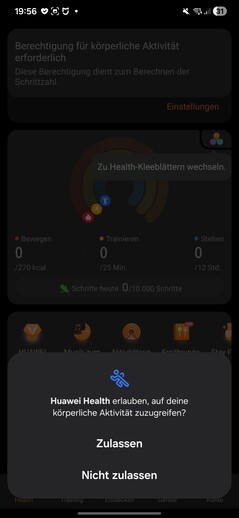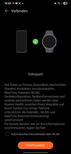 Vid testning upptäcktes smartklockan omedelbart och parades ihop utan problem. Flera behörigheter måste beviljas under installationen. Ett Huawei-ID krävs också. I slutet av processen startas en handledning på klockan. En sak sticker ut: varje app som öppnas på smartklockan kräver sitt eget separata samtycke för databehandling.