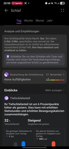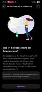 Klockan registrerar också kontinuiteten i djupsömnen, andningskvaliteten, hjärtfrekvensen, syremättnaden och andningsfrekvensen. För att detektera sömnljud krävs en parkopplad smartphone i närheten. Den totala sömnen bedöms med hjälp av en poäng och ett stjärnsystem, och programvaran ger analyser och rekommendationer för att förbättra sömnkvaliteten.