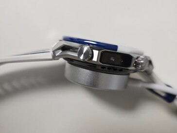 På höger sida hittar du en roterande och tryckbar krona, en knapp, en högtalare och Huaweis X-Tap-sensor. På vänster sida finns ytterligare en knapp och en djupsensor. Det 22 millimeter långa bandet kan bytas ut utan verktyg.