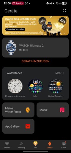 Huawei Health-appen krävs för att konfigurera och använda Watch Ultimate 2. Den senaste versionen är fortfarande inte tillgänglig i Google Play Store, men den kan laddas ner från andra appbutiker eller direkt via webbläsaren.