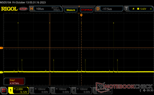 Strömförbrukningen är mycket hög oavsett ströminställning. Tomgångskörning på skrivbordet i Power Saver iGPU-läge och med lägsta ljusstyrka skulle fortfarande kräva 32 W jämfört med bara 9 W till 10 W på Legion Slim 5 16 eller Asus ROG Strix G16 alla med IPS-paneler. Förbrukningen beror inte bara på ljusstyrkan utan även på färgen, precis som för en OLED-panel. En helt vit skärm på vår Legion 9i 16, till exempel, skulle kräva cirka 13 W mer än en helt svart skärm även när den är inställd på maximal ljusstyrka för båda färgerna. IPS-paneler skulle bara kräva några få watt som mest oavsett vilken färg som jämförs.