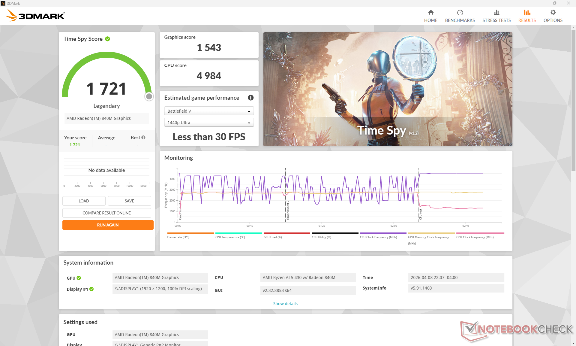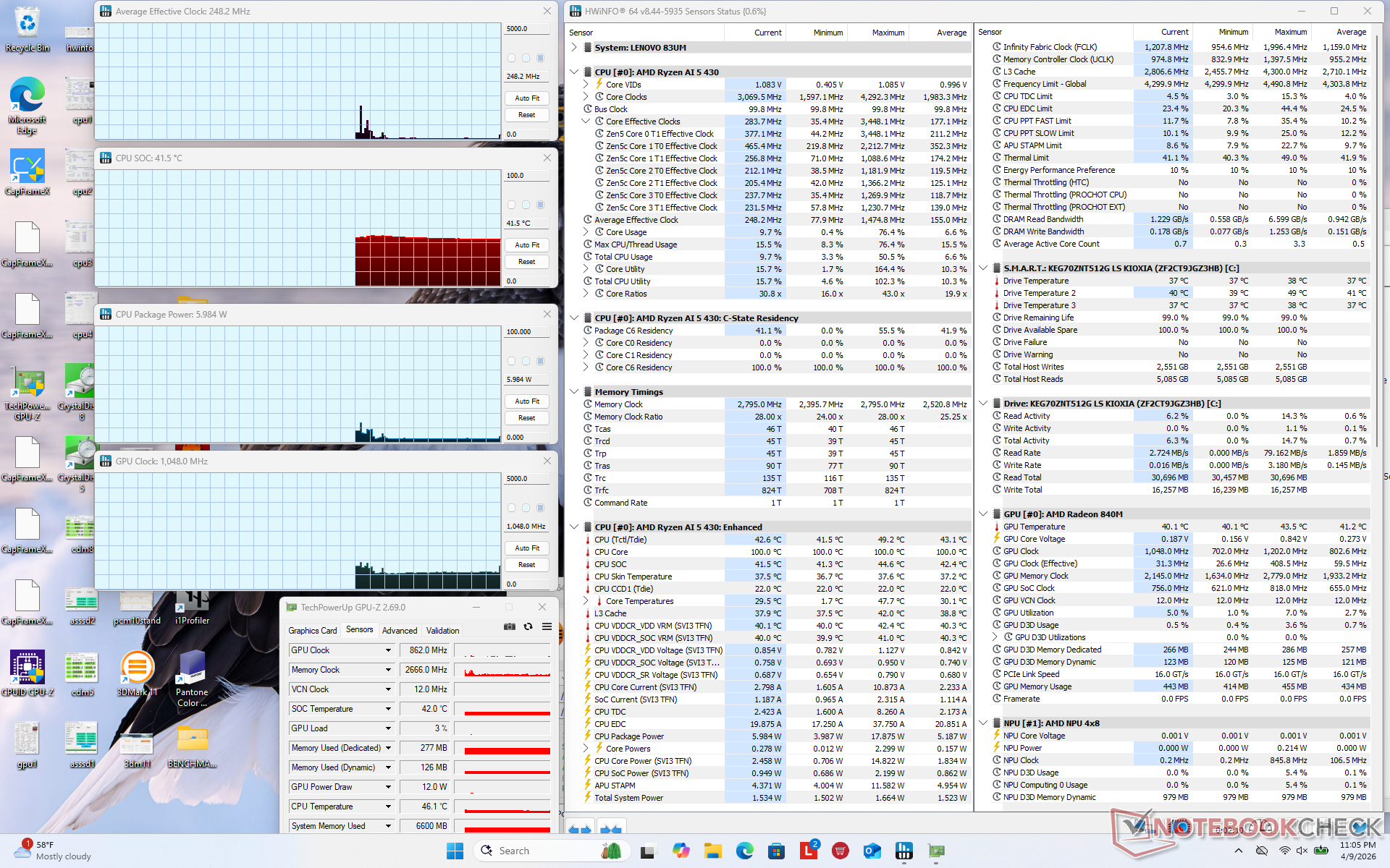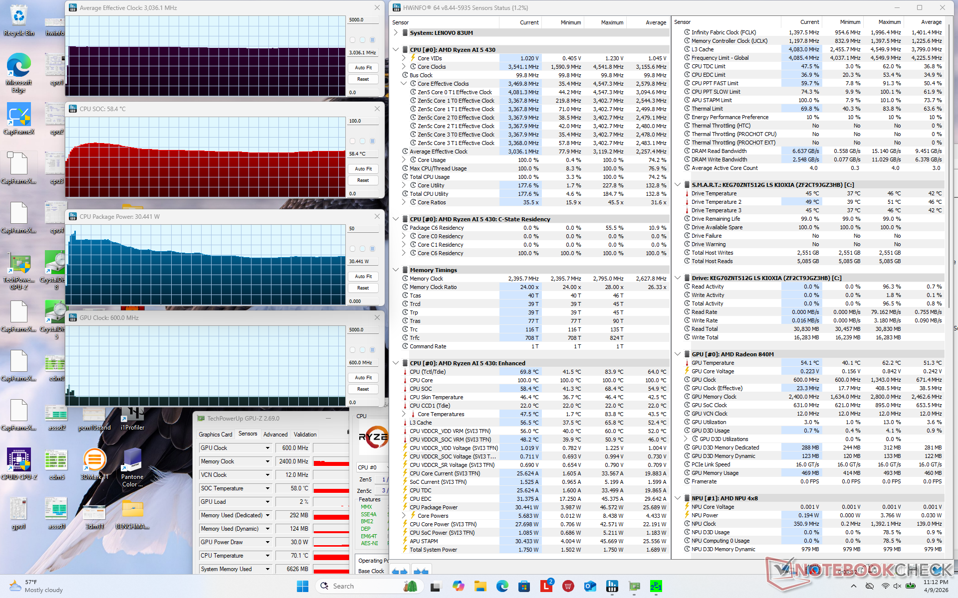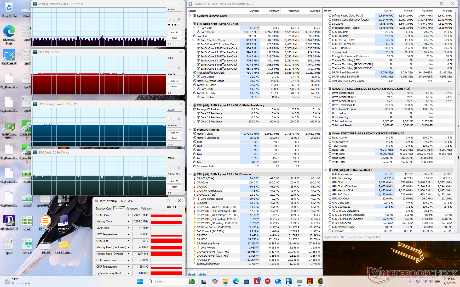 | Genomsnittlig CPU-klocka (GHz) | GPU-klocka (MHz) | Genomsnittlig CPU-temperatur (°C) | |