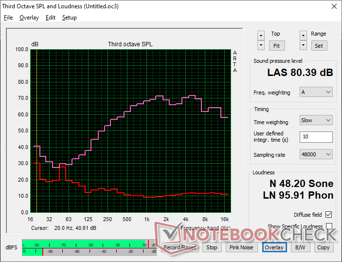 (±) | linjäriteten för det totala ljudet är genomsnittlig (15.5% skillnad mot median)
