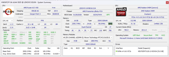 | Lenovo IdeaPad 5 2-in-1 15AGP11 AMD Ryzen AI 5 430 ⎘ AMD Radeon 840M ⎘ 16 GB Minne | Listpris: 800 USD | 1.8 kg | 17.6 mm | 15.30" 1920x1200 148 PPI IPS | |
