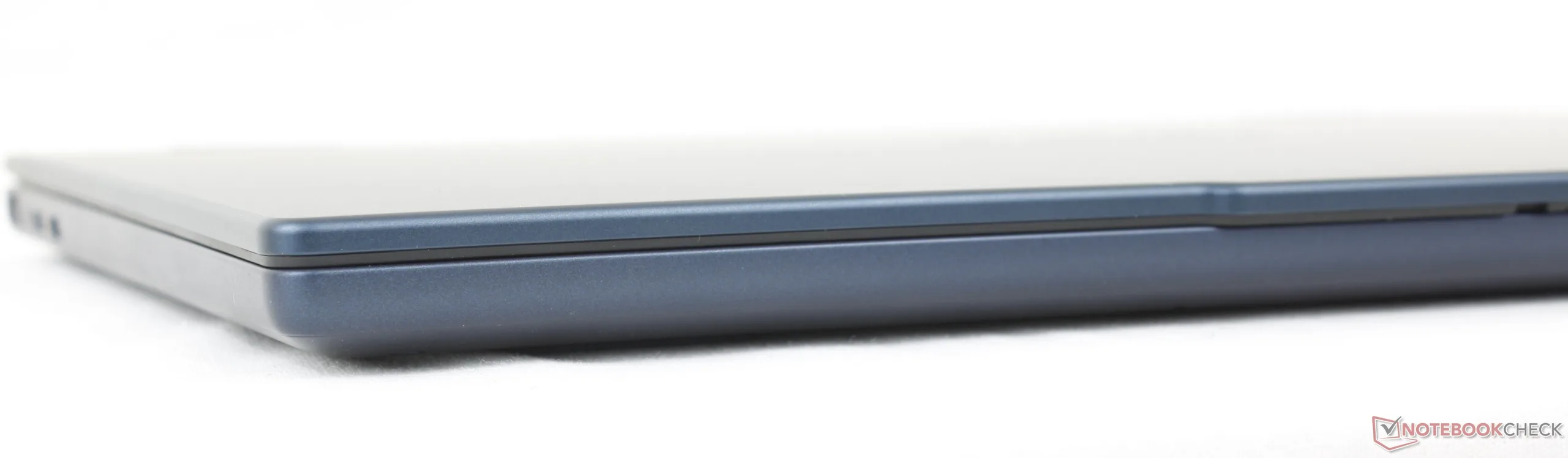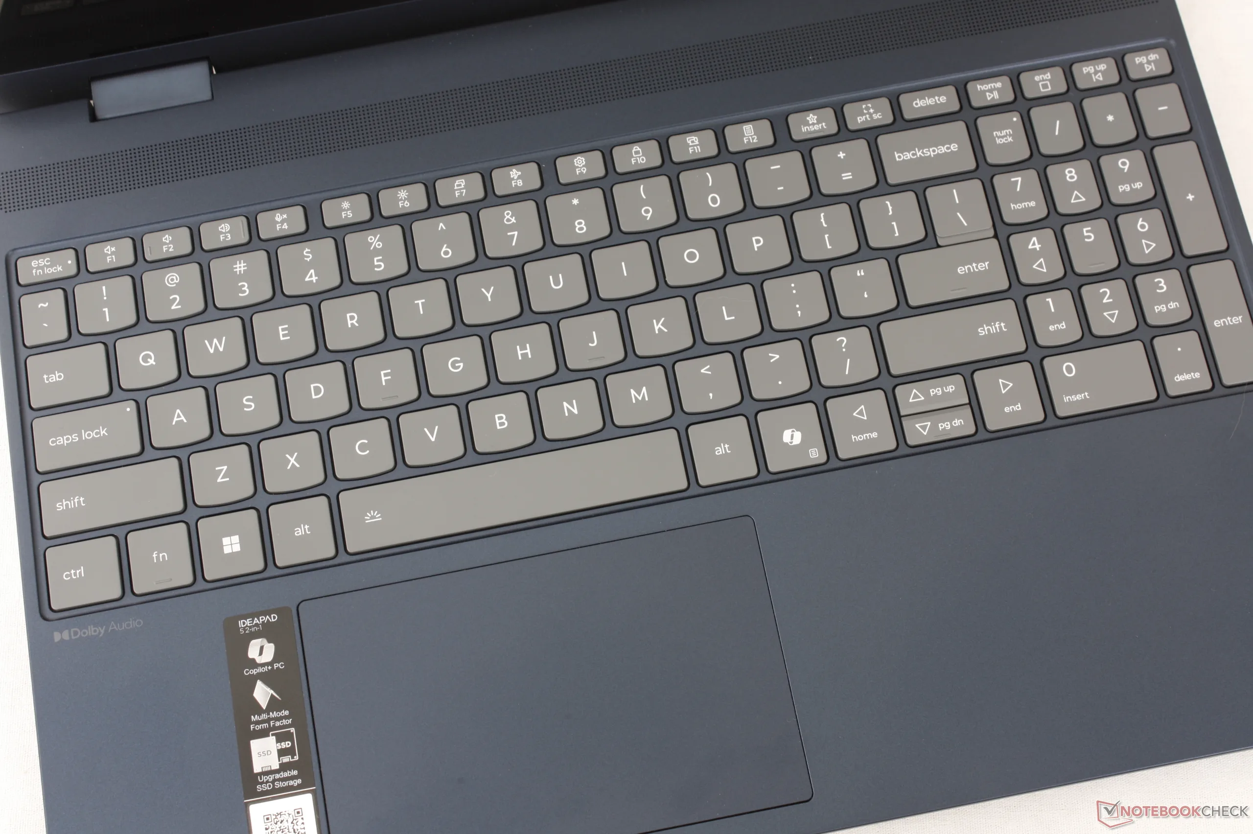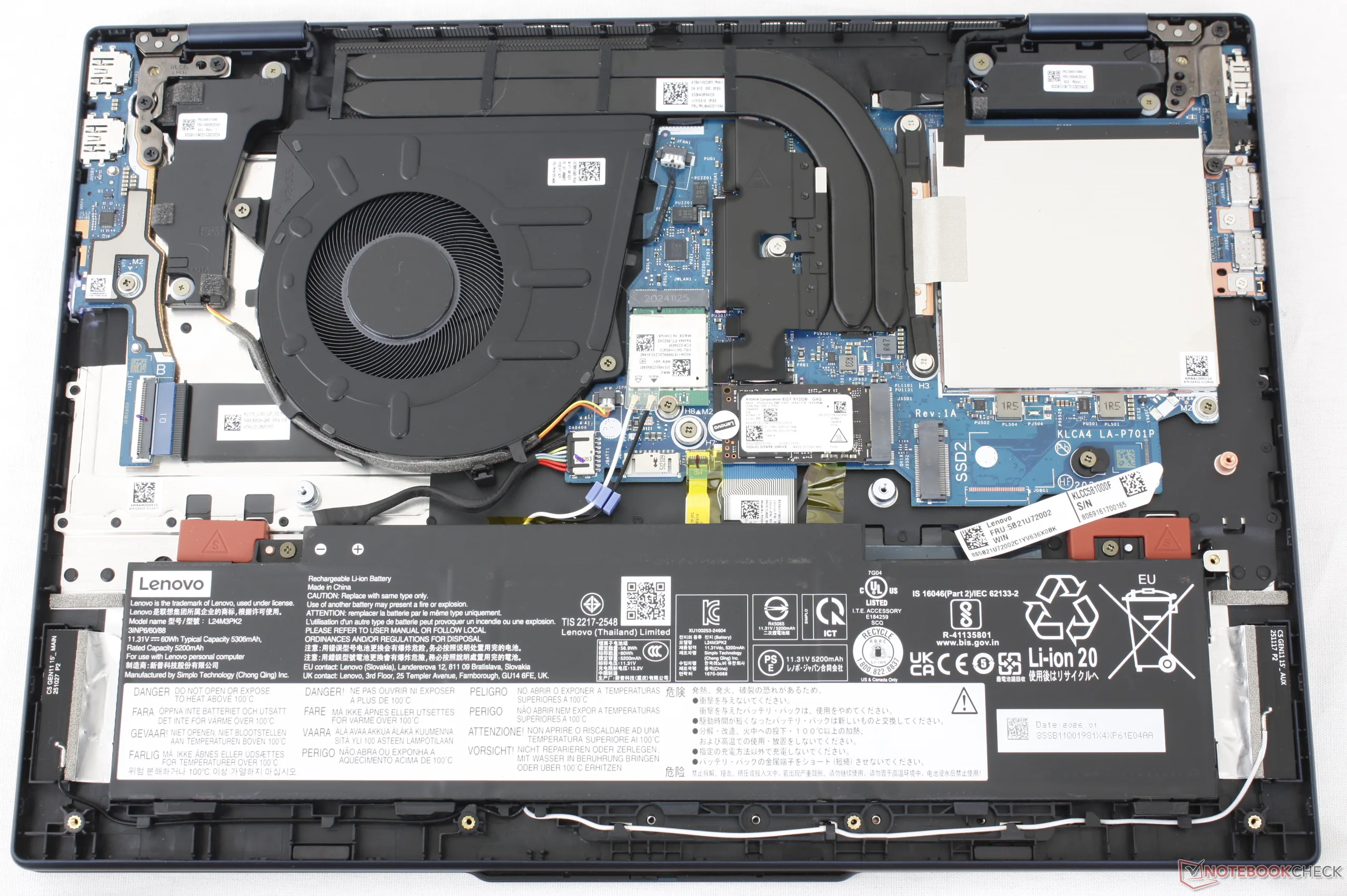 Chassit består av aluminium på ovansidan och ABS-GF eller glasfiberarmerad plast på undersidan, vilket ger ett bra första intryck med tanke på priset. Unibody-färgen är dock visuellt tråkig och basen böjer sig lite lättare jämfört med en mer avancerad Yoga Pro eller Yoga 7-alternativ.