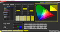 Vid analys med den professionella CalMAN-programvaran (X-Rite i1 Pro 2) blir det dock snabbt tydligt att vi har att göra med en IPS-panel med låg budget. Utanför lådan finns det en lätt gul nyans och färgtemperaturen är något för varm. Efter kalibrering är gråskalorna korrekta och färgtoningen finns inte längre. Den motsvarande profilen - som kan laddas ner gratis ovan - minskar den maximala ljusstyrkan med cirka 40 cd/m² och är märkbar i mycket ljusa miljöer.