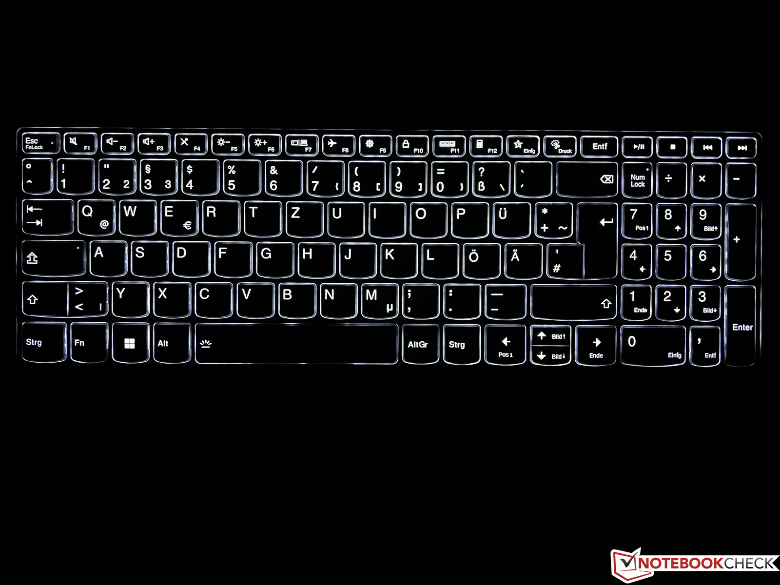 Lenovo har utrustat IdeaPad Flex 5 16 med ett bakgrundsbelyst tangentbord med en dedikerad numerisk tangentbalk. Kvaliteten är av den sort vi vant oss vid i IdeaPad och erbjuder en genomsnittlig skrivupplevelse. Även om vi inte stötte på några problem under våra tester när vi skrev mycket, finns det helt klart bättre (och ofta dyrare) alternativ. När det gäller kvaliteten är ClickPad dålig eftersom den inte är monterad i nivå (den är något lägre på höger sida) och dessutom är lite skakig. Dessutom är klickljuden mycket högljudda och har ett ljud av låg kvalitet. Eftersom ClickPad sitter direkt under mellanslagstangenten och därför något till vänster om mitten är detta något som man till en början kan behöva vänja sig vid.