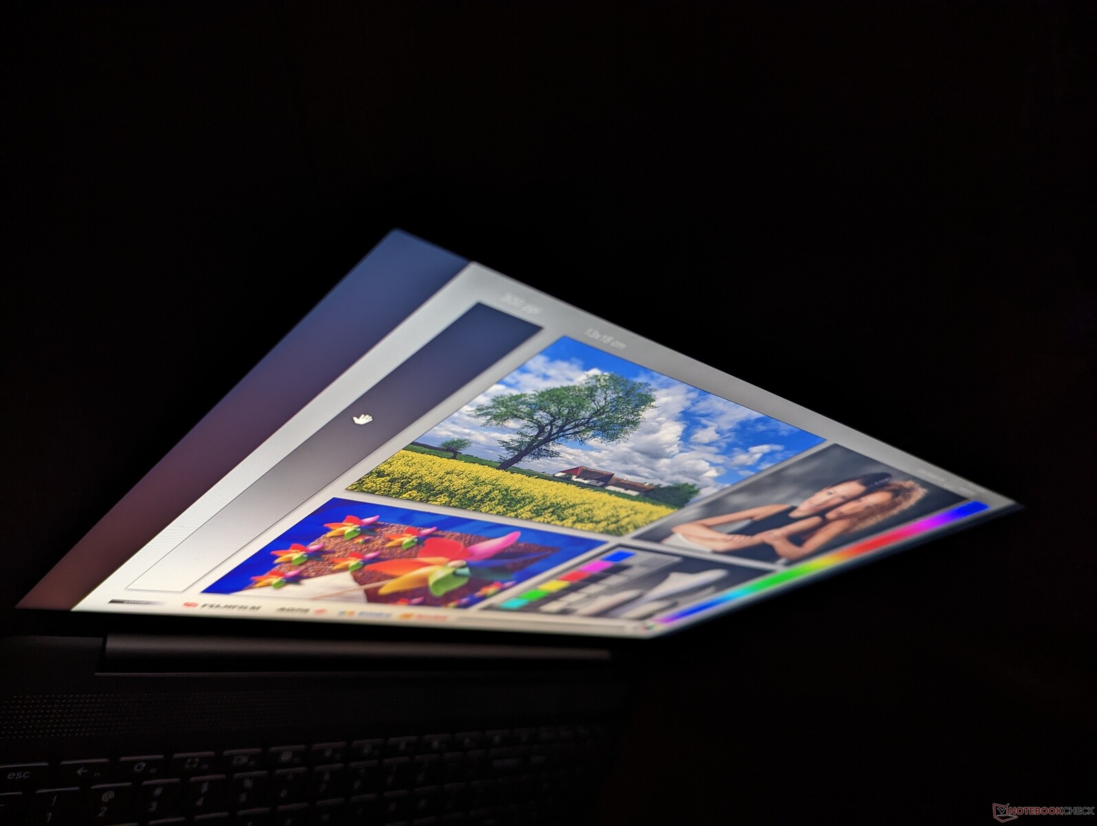 Skärmen här är ljusare än på de flesta andra Chromebooks där <300 nits är vanligt. Trots det är den inte tillräckligt ljus för att klara direkt solljus eller en ljusmulen dag med mulet väder. Du kommer ändå att vilja hålla dig i skugga för att minimera bländning.