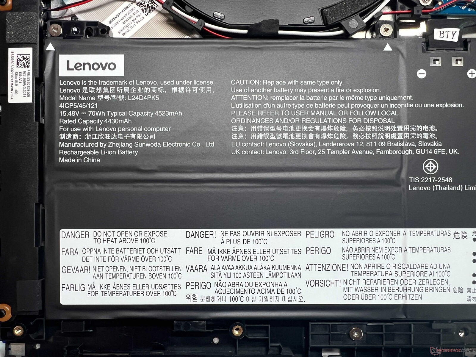 Kombinationen av låg strömförbrukning och ett 70 Wh-batteri ger betydligt bättre drifttider än de direkta konkurrenterna. I WLAN-testet vid 150 cd/m² (motsvarar 72% av vår testenhets maximala ljusstyrka) uppnådde IdeaPad strax under 14,5 timmar och mer än 11 timmar vid full ljusstyrka. En komplett laddningsprocess med påslagen enhet tar 2 timmar; 80% av kapaciteten är tillgänglig igen efter drygt en timme.