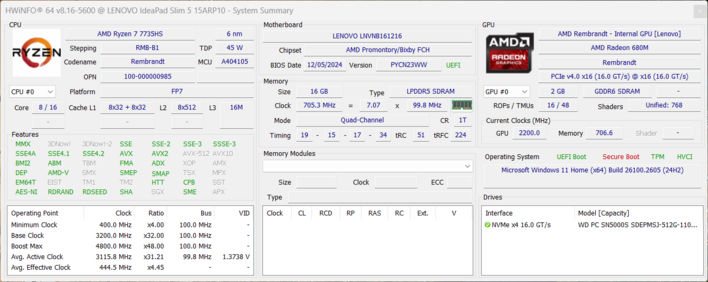 | Lenovo ThinkPad E16 Gen 2 21M5002VGE AMD Ryzen 5 7535HS ⎘ AMD Radeon 660M ⎘ 32 GB Minne, 1024 GB SSD | Amazon: $769.00 Listpris: 935€ | 1.9 kg | 21.3 mm | 16.00" 1920x1200 142 PPI IPS |