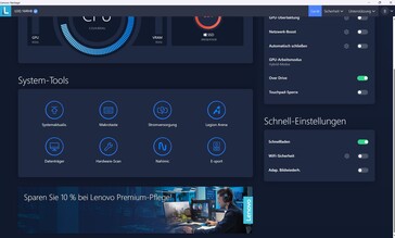 Fläktbeteendet och batteritiden ger anledning till klagomål: Fläktarna börjar snabbt bröla vid maximal ljudnivå även under genomsnittlig belastning. Och trots det ganska stora batteriet får vi bara körtider under genomsnittet. Kanske borde Lenovo bli av med reklamen i sitt kontrollcenter och förinstallera mindre bloatware.