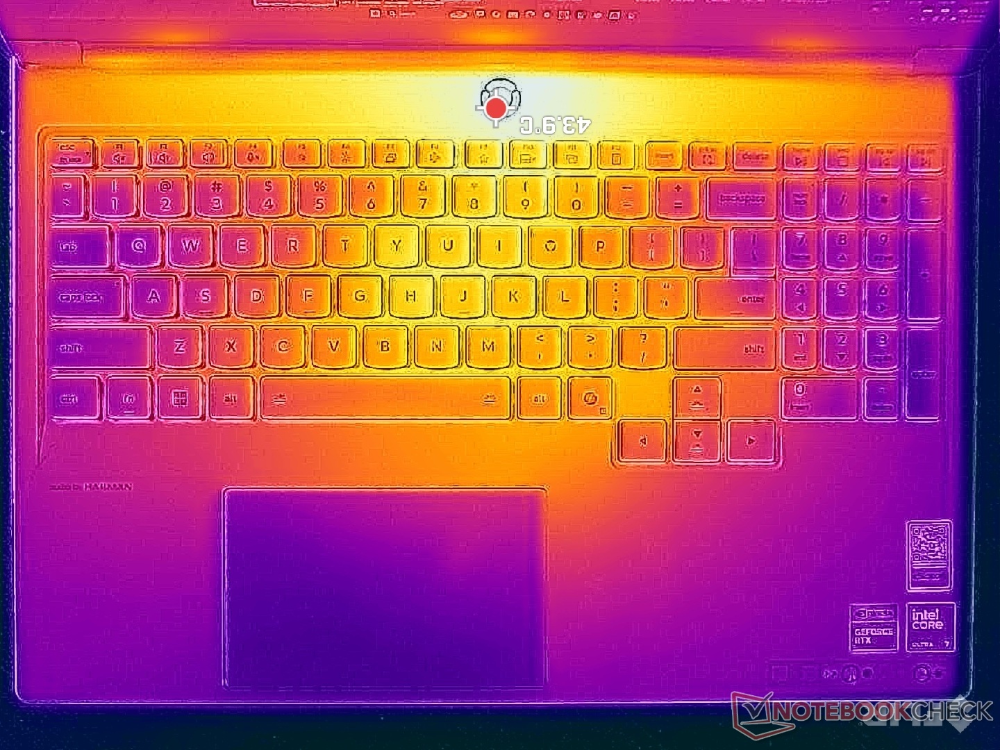 (±) 3: The average temperature for the upper side is 36.3 °C / 97 F, compared to the average of 33.9 °C / 93 F for the class Gaming.