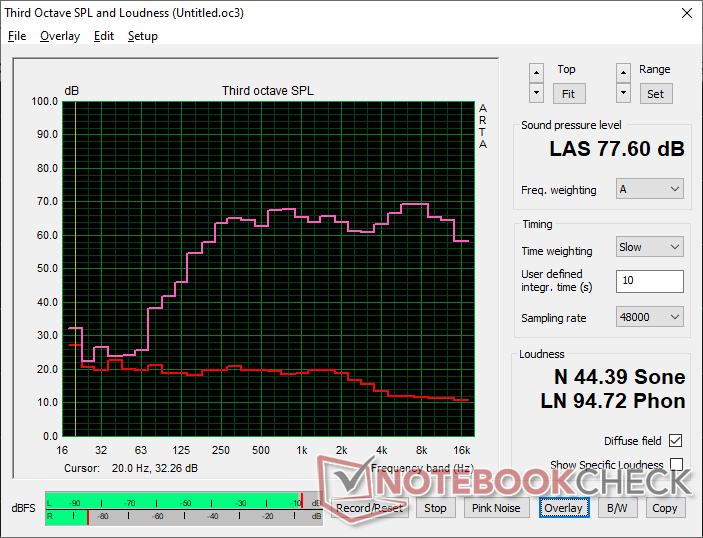(±) | högtalarljudstyrkan är genomsnittlig men bra (77.6 dB)