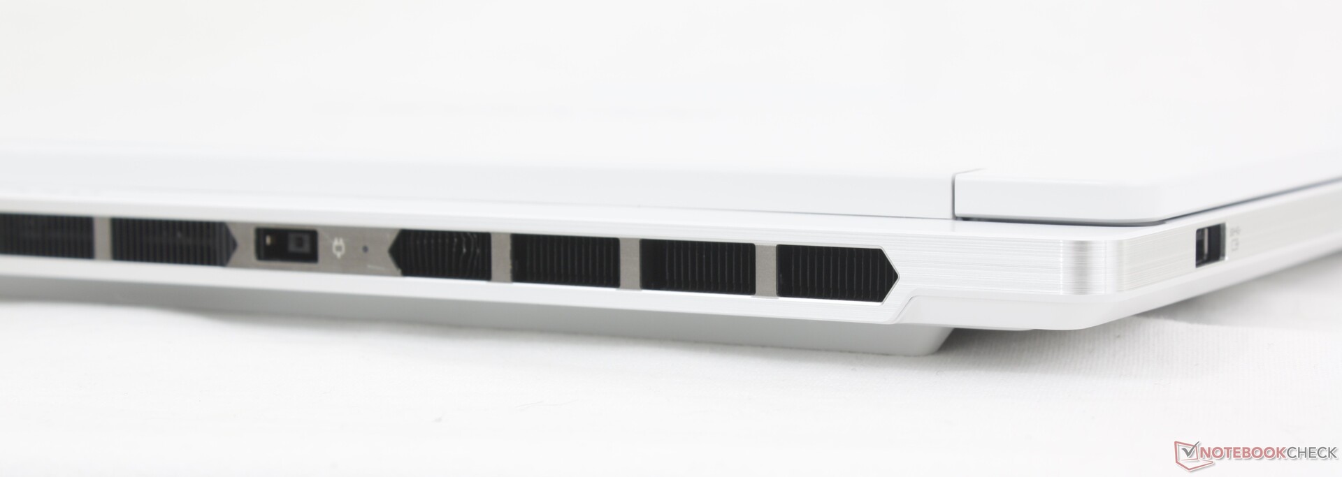 Systemet ärver alla portar som fanns på förra årets Legion 7 16IRX9 förutom den tredje USB-C-porten längs högerkanten. Jämfört med konkurrerande modeller som Asus TUF Gaming A16har Lenovo färre USB-A-portar och ingen RJ-45-port.