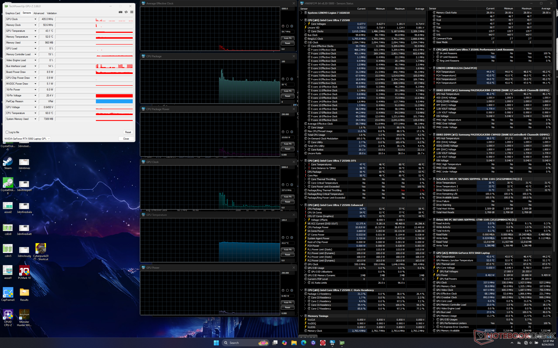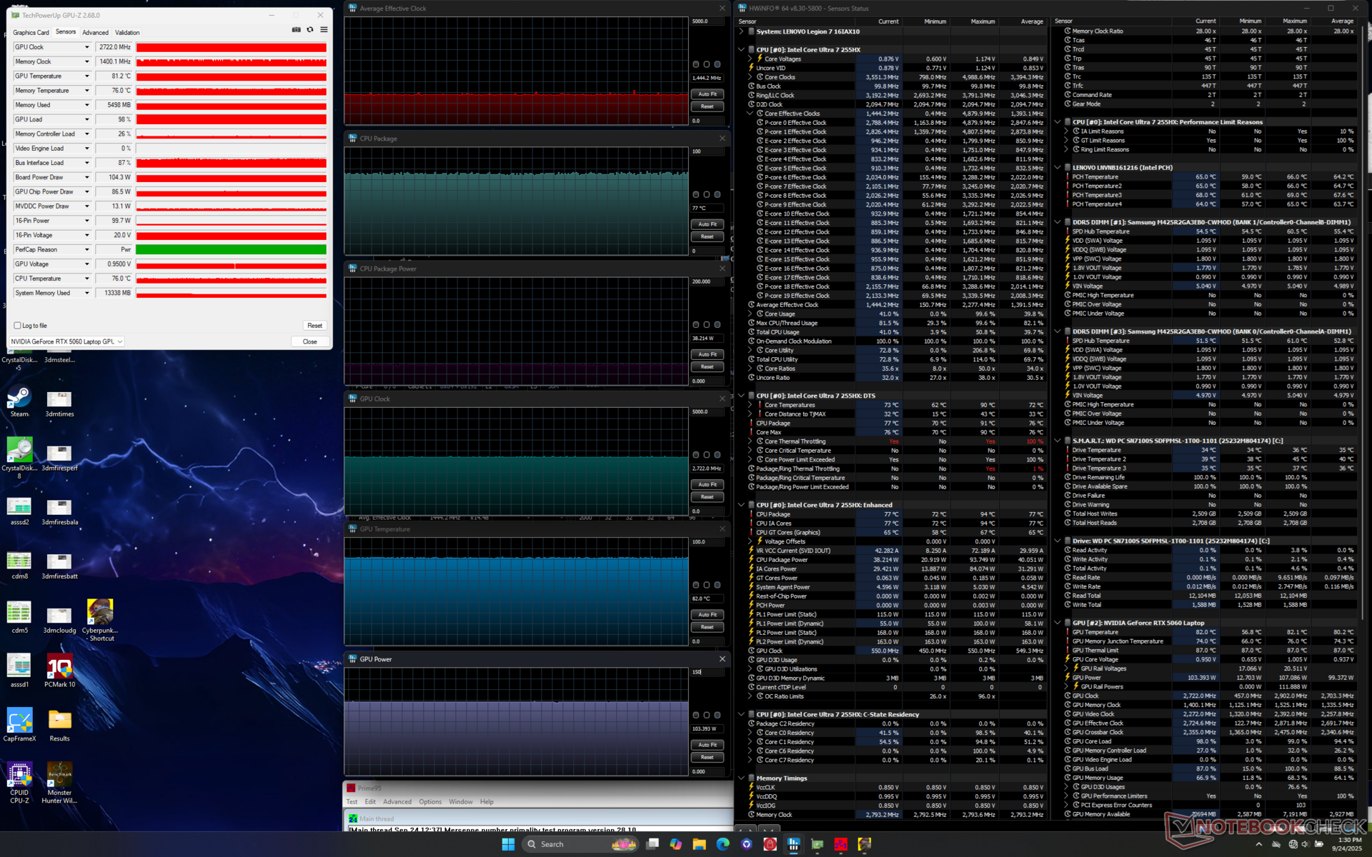 Lenovo Legion 7 16IAX10 Ultra 7 255HX, GeForce RTX 5060 Laptop, WD PC SN7100S SDFPMSL-1T00-1101, OLED, 2560x1600, 16" | Alienware 16 Aurora Core 7 240H, GeForce RTX 5060 Laptop, , IPS, 2560x1600, 16" | Asus TUF Gaming A16 FA608UP R7 260, GeForce RTX 5070 Laptop, Western Digital PC SN5000S SDEQNSJ-1T00, IPS, 2560x1600, 16" | Gigabyte Gaming A16 GA6H i7-13620H, GeForce RTX 5070 Laptop, Kingston OM8PGP41024Q-A0, IPS, 2560x1600, 16" | MSI Vector 16 HX AI A2XWHG Ultra 7 255HX, GeForce RTX 5070 Ti Laptop, Micron 2400 MTFDKBA512QFM, IPS, 2560x1600, 16" | Lenovo Legion 5 Pro 16IAX10H Ultra 9 275HX, GeForce RTX 5070 Ti Laptop, Western Digital PC SN8000S SDEPNRK-1T00, OLED, 2560x1600, 16" | |
