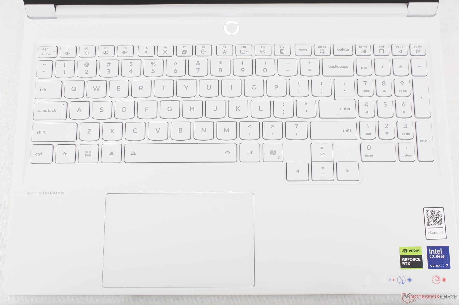 Med sina 12 x 7,5 cm är klickplattan identisk i storlek med klickplattan på Legion 5 Pro 16, medan den bara är något större än klickplattan på Alienware 16X Aurora. Den är ändå i minsta laget, särskilt för vertikal markörstyrning. Det finns ett betydande oanvänt utrymme mellan mellanslagstangenten och styrplattan som kunde ha använts för en rymligare styrplatta.