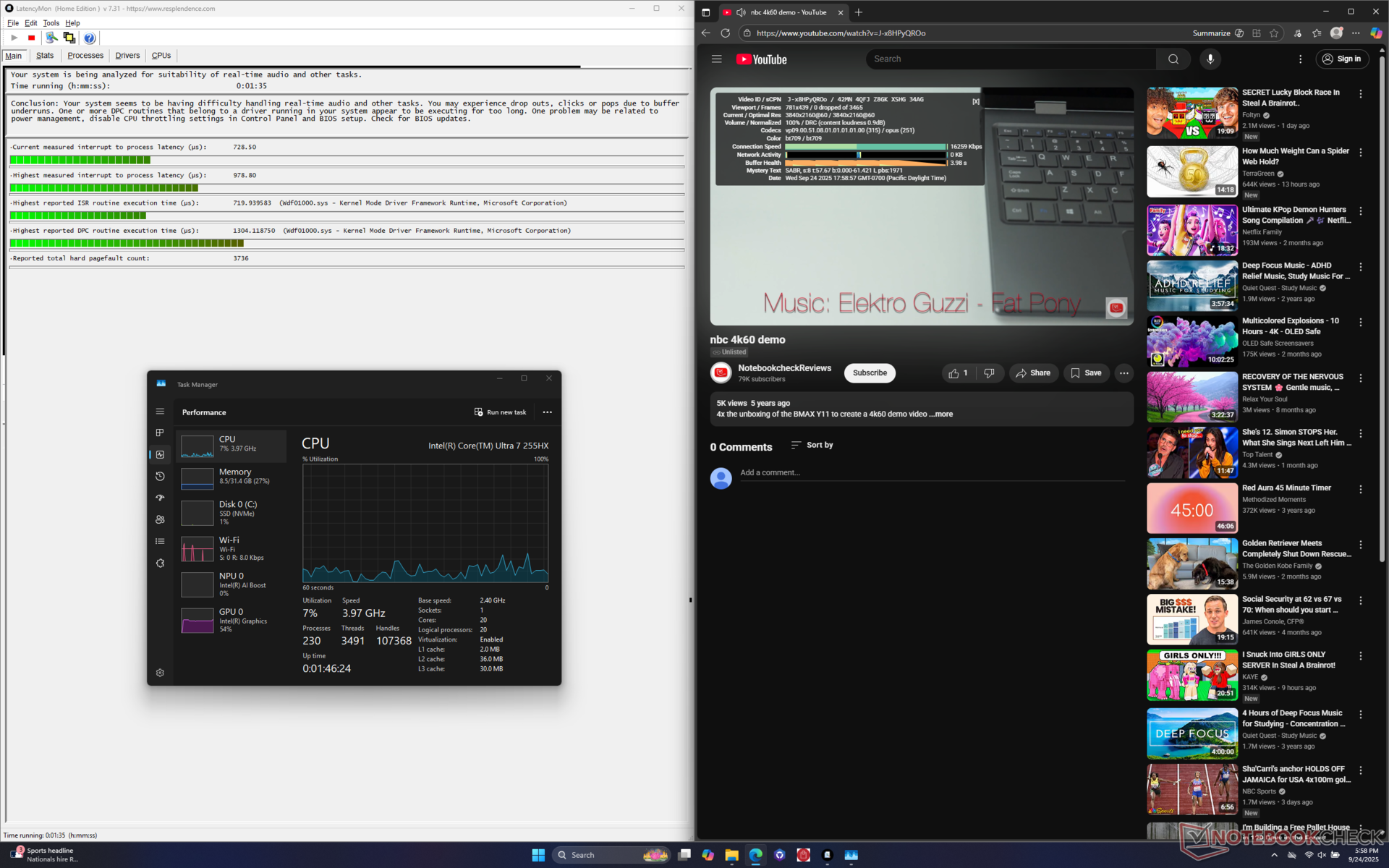 Kombinationen av en CPU i HX-serien, OLED-skärm och ett något mindre batteri för kategorin har bidragit till kortare drifttider. WLAN-surfning i balanserat och iGPU-läge varar bara lite över 4,5 timmar jämfört med 7+ timmar på alternativ som Alienware 16 Aurora eller Gigabyte Gaming A16.
