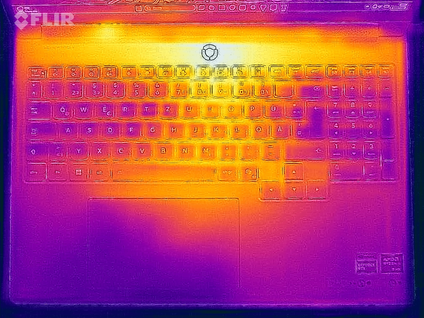 Lenovo har ett mycket bekvämt tangentbord med en tangentrörelse på 1,6 mm samt RGB-bakgrundsbelysning (24 zoner). Du får också stora piltangenter samt en dedikerad numpad, även om dessa tangenter är något smalare. Tangentbordet är utmärkt för såväl spel som dagliga aktiviteter. Klickplattan är något förskjuten mot vänster sida och erbjuder bra glidegenskaper. Den skramlar inte, men mekaniska klick i den nedre halvan är ganska högljudda.