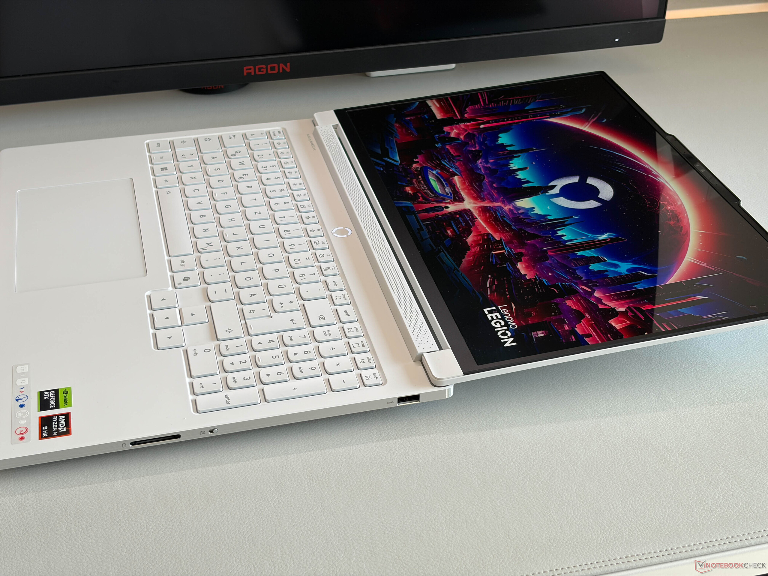 Designen på den nya Legion 7a 16 är i stort sett identisk med den tidigare versionen och du kan återigen välja mellan Glacier White eller Nebula (blå). Men medan Legion 7i 16 G10 redan var ganska lätt med sina 1,978 kg, är den nya Legion 7a 16 till och med 200 gram lättare (1,78 kg) och är därför också helt klart den lättaste enheten i vår jämförelsegrupp.