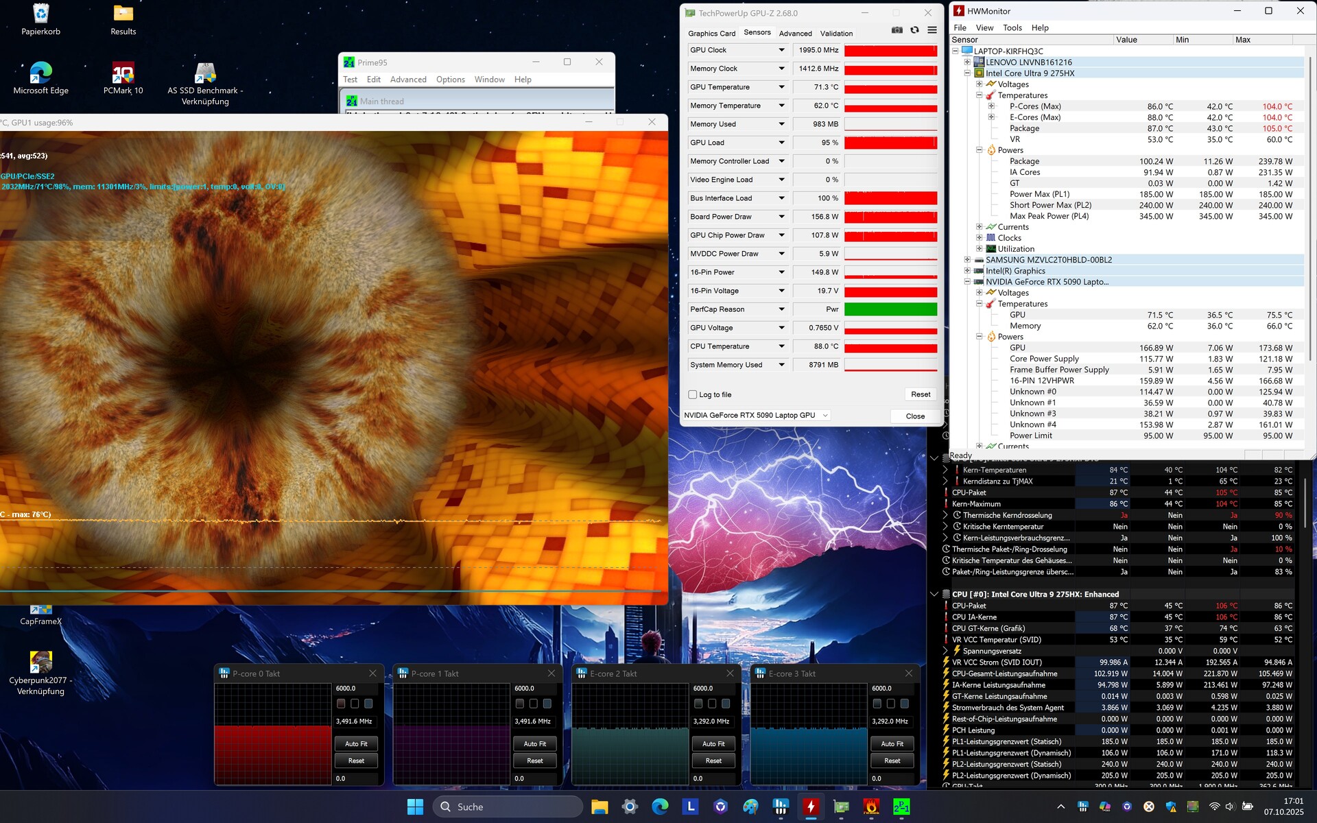 Motsvarigheten till Legion 9 18:s RTX 5080 klarar sig något bättre i dessa avseenden trots sin lägre prestanda.