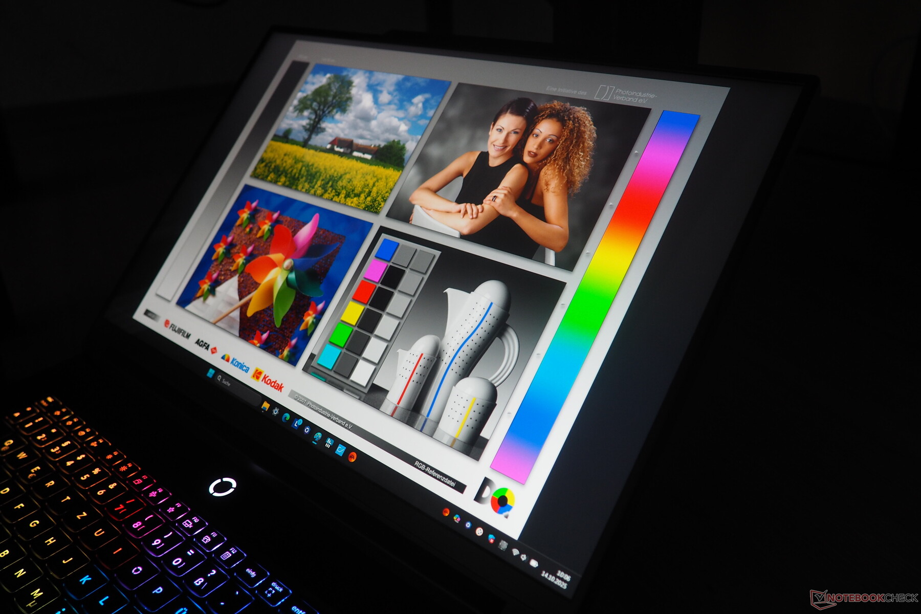 Fördelen med den glansiga versionen är ljusa färger, och den här 240 Hz-panelen erbjuder en stor färgomfångstäckning. Förutom Display P3 är Adobe RGB också nästan helt täckt.