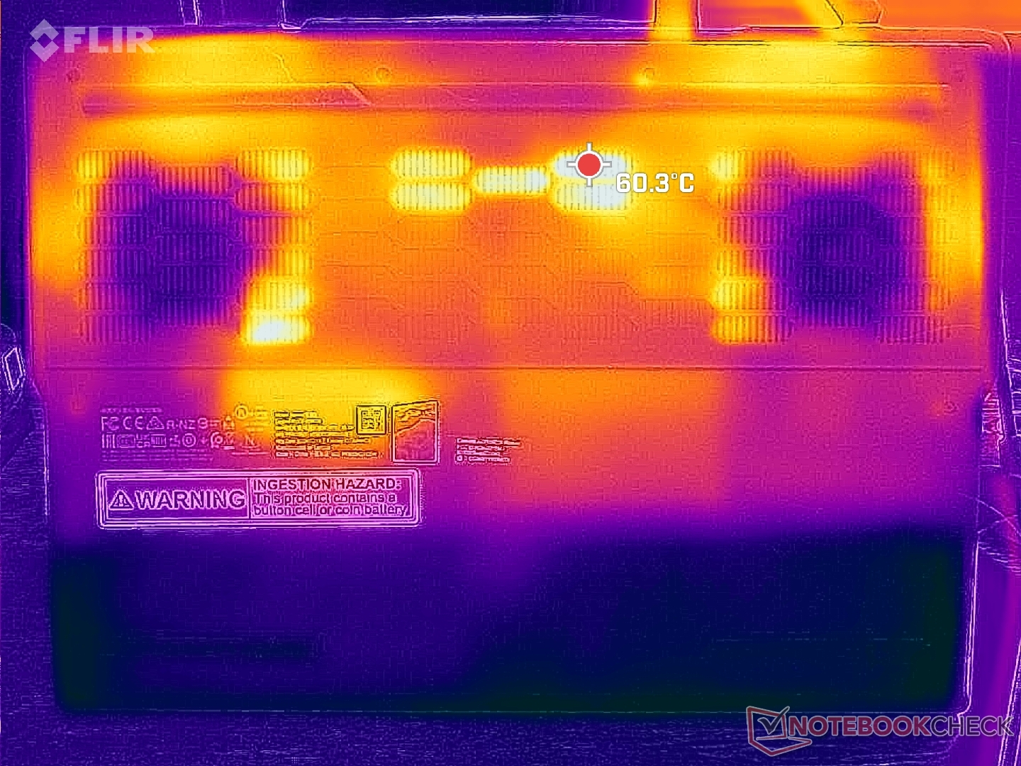 Yttemperaturerna kan vara varmare än vad vi registrerade på förra årets modell. När du spelar, till exempel, skulle en stor del av tangentbordet vara 40 C jämfört med bara 36 C på Legion Pro 5 16IRX8 eller 34 C på Alienware m16 R2. Handledsstöden och WASD-tangenterna skulle förbli svalare för att hålla händerna bekväma när du spelar, men resten av den bärbara datorn skulle vara ganska varm.