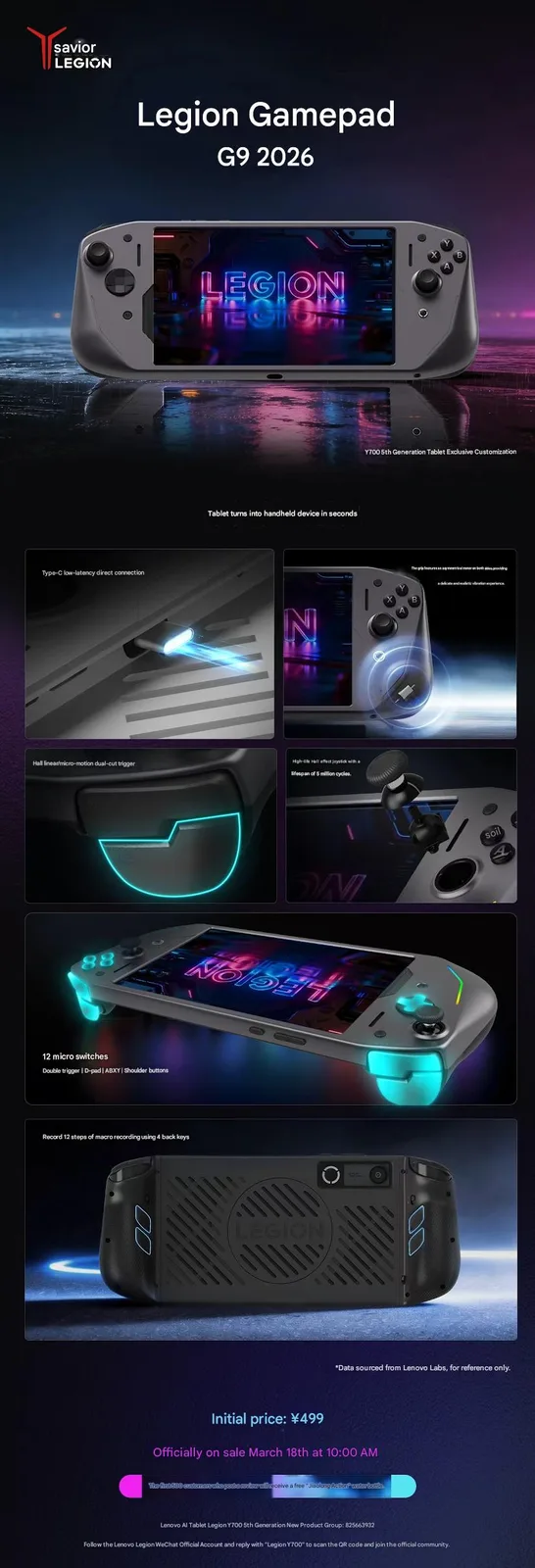 Legion G9 2026 är officiellt endast kompatibel med Legion Y700 Gen 5 via surfplattans sidomonterade USB Type-C-port. Styrenheten bör dock fungera med Legion Tab Gen 5 också. Lenovo har dock inte klargjort om Legion G9 2026 kommer att säljas globalt. Som referens har Lenovo prissatt sin nya styrenhet till CNY 499 (~ $73) i Kina.