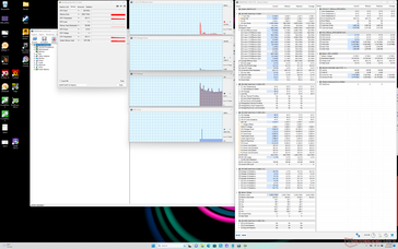 Vi kan mäta en maximal förbrukning på 66 W från den lilla (~5,5 x 5,5 x 2,8 cm) 65 W USB-C-adaptern när processorn utnyttjas till 100 procent. Denna hastighet skulle bara vara i 10 till 15 sekunder som visas i skärmdumparna nedan på grund av modellens termiska begränsningar.